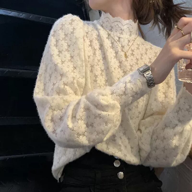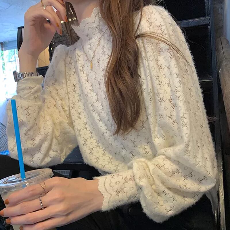 ハイネックレースブラウストップス ブラウスミドル丈 袖あり 長袖 袖レース ビショップ・スリーブ ハイネック タートルネック ストレート レース 透け感 ポリエステル かわいい 大人可愛い きれいめ 大人 上品 おしゃれ お洒落 レトロ 大人女子 こなれ感 ラブリー キュート 個性的 クール エレガント 主役級 存在感 フォーマル 花柄 春 秋 入学式 入園式 卒業式 卒園式 10代 20代 30代 レディース 女性用 ママ オフィス OL 通勤 学生 通学 デート お出かけ 女子会 パーティー