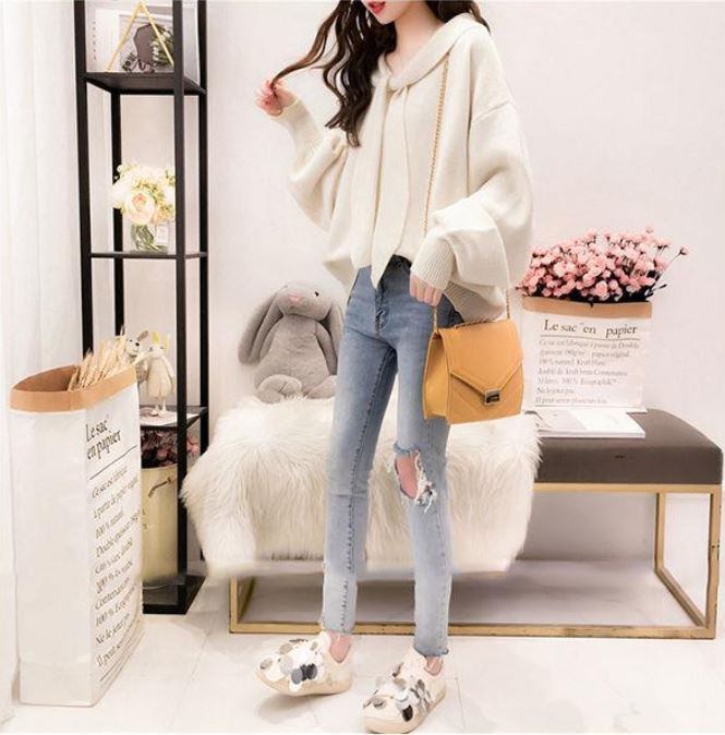 大人女子に大人気のボーカラーシンプルニットソーがランクイン!程よいボリュームの袖やドロップショルダー、大人可愛いボウタイネックなど、こなれ感のある大人カジュアルスタイルを叶えてくれます。また、上品なVネックとニットの質感が程よい落ち感を演出し、縦長シルエットでスタイルアップ効果も抜群です。