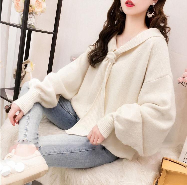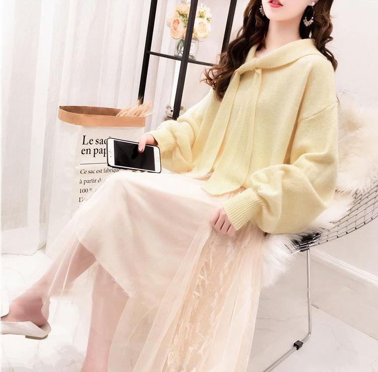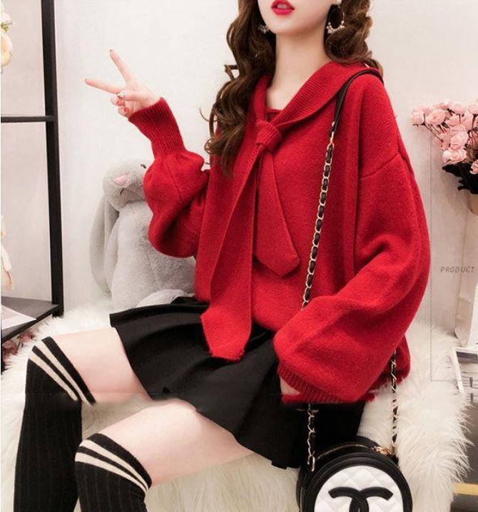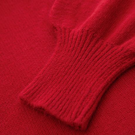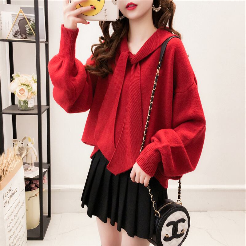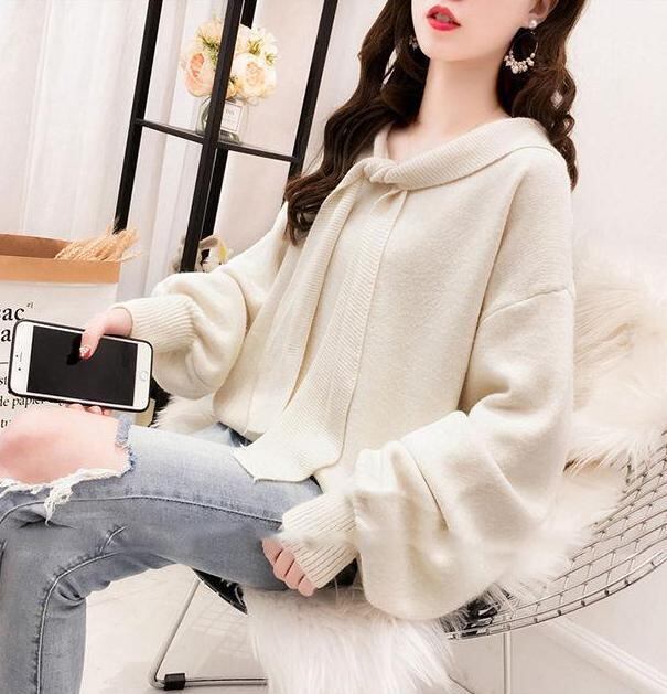 ボーカラー ボウタイネック ロングカフス トップス ニットソー セーター プルオーバー ミディアム丈 長袖 ボリューム袖 パフスリーブ ドロップショルダー Vネック 襟付き ニット かわいい 大人可愛い シンプル カジュアル 上品 おしゃれ レトロ 大人女子 こなれ感 無地 秋 冬 春 レディース 女性用 ママ 女の子 学生 通学 デート お出かけ 女子会 休日 着回し 普段使い 韓国系 オルチャン コーデ スタイル 楽ちん 体系カバー S M L XL 2XL レッド オフホワイト イエロー