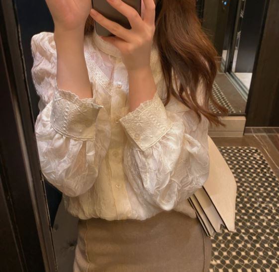 レースブラウス トップス プルオーバー 白トップス ミドル丈 袖あり 長袖 ビショップ・スリーブ スタンドカラー ストレート レース 前開き 透け感 ボタン ポリエステル かわいい 大人可愛い きれいめ 大人 上品 おしゃれ お洒落 レトロ 大人女子 こなれ感 ラブリー キュート 個性的 エレガント モダン 主役級 春 秋 10代 20代 30代 レディース 女性用 ママ オフィス OL 通勤 学生 通学 デート お出かけ 女子会 休日 パーティー イベント 旅行 ホテル レストラン 着回し ファッション
