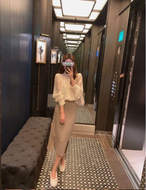 主役級の存在感を放つ、レースブラウスの登場です。長袖で袖口はビショップ・スリーブ仕様で、ミドル丈のトップスはスッキリとシャープなシルエットに仕上がっています。透け感のあるレース地に、前開きのスタンドカラーで大人っぽさを演出。ボタンもアンティーク調で、さりげないレトロ感をプラスしています。清涼感ある白地に、上品なレースのデザインは、どんな場面でも活躍します。フェミニンさと品の良さが共存する、大人かわいいスタイルを楽しみましょう。