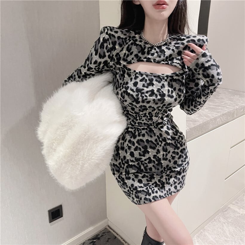 ヒョウ柄のタイトワンピースです。
