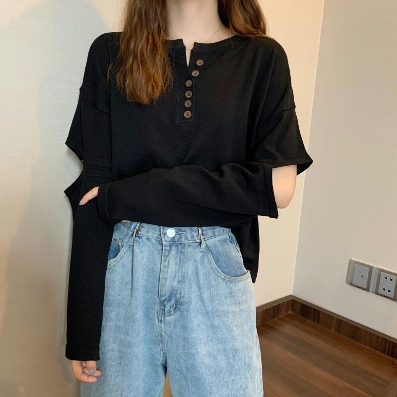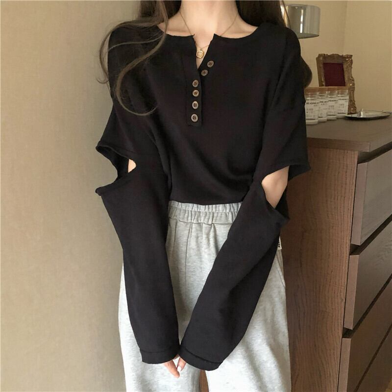 袖の開きデザインが特徴的なトップスです。