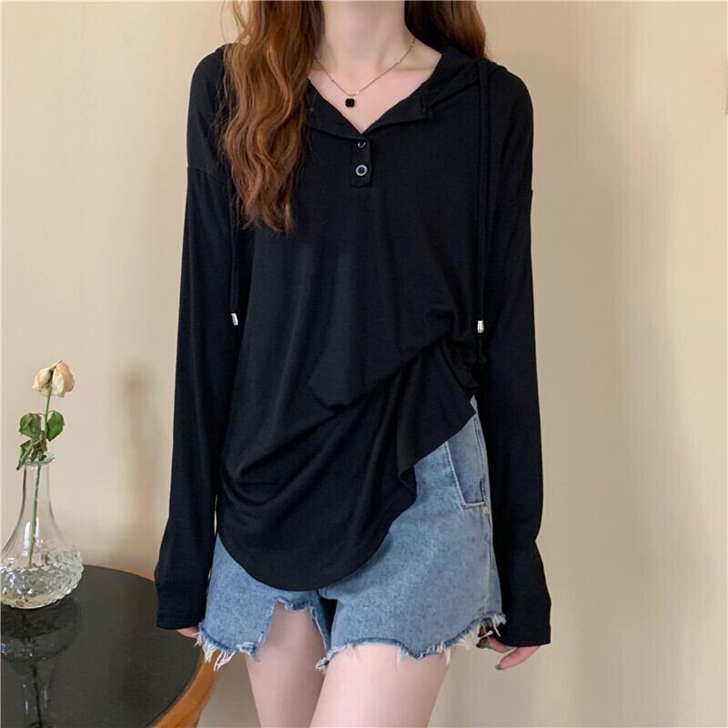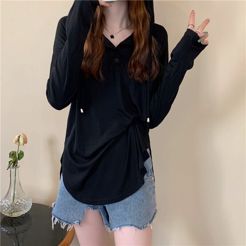 トップス カットソー 長袖 萌袖 Vネック フード付き かわいい 大人可愛い シンプル カジュアル おしゃれ お洒落 かっこいい 大人可愛い 大人女子 こなれ感 ラフ メンズライク ボーイッシュ キュート ガーリー ルーズ 個性的 クール 主役級 存在感 春 秋 冬 10代 20代 30代 レディース 女性用 ママ 学生 デート お出かけ 女子会 お泊まり 休日 着回し 普段使い 韓国 韓国系 ファッション コーデ スタイル 楽ちん 新作 定番 大きい 大きめ ビッグサイズ ゆったり ゆる インポート