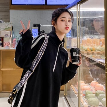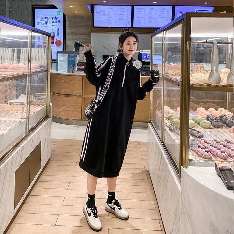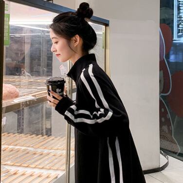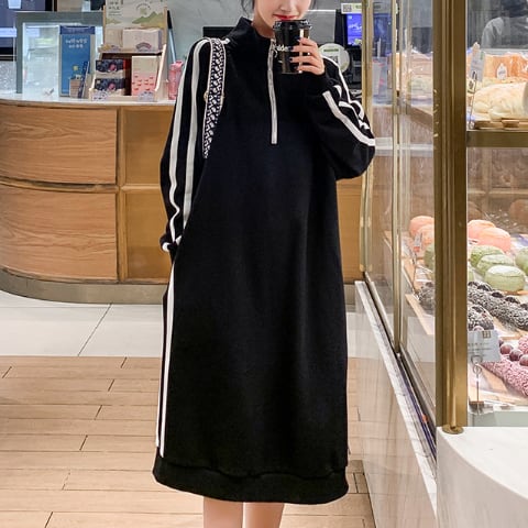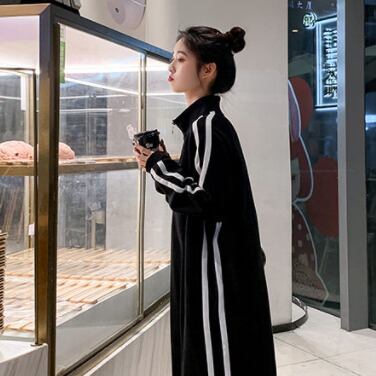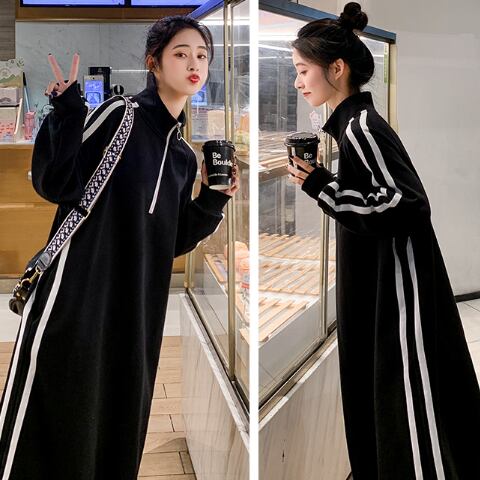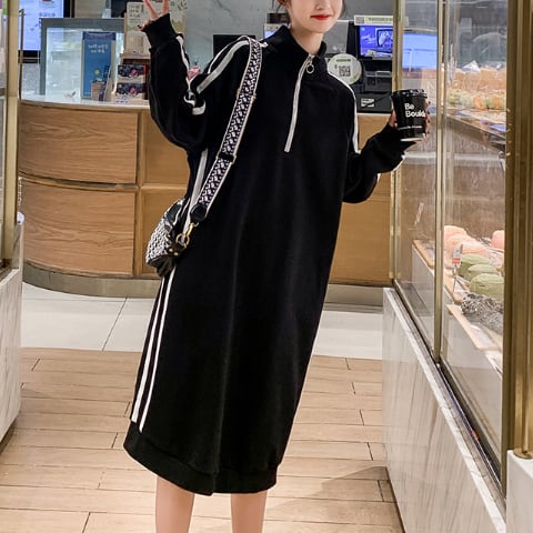 スウェットワンピース プルオーバー ロング丈 袖あり 長袖 スクエアカラー ストレート イージー ジップアップ ベルベット かわいい 大人可愛い カジュアル おしゃれ お洒落 かっこいい レトロ ラフ マニッシュ ボーイッシュ スポーティー ラブリー キュート ガーリー ルーズ 個性的 モダン 主役級 存在感 柄 ボーダー 秋 冬 10代 20代 レディース 女性用 学生 通学 デート お出かけ 休日 アウトドア 旅行 着回し 普段使い スタイル 楽ちん 体系カバー 新作 トレンド 流行