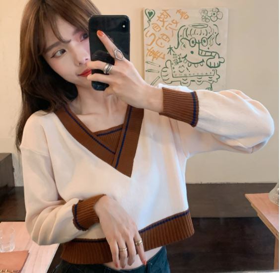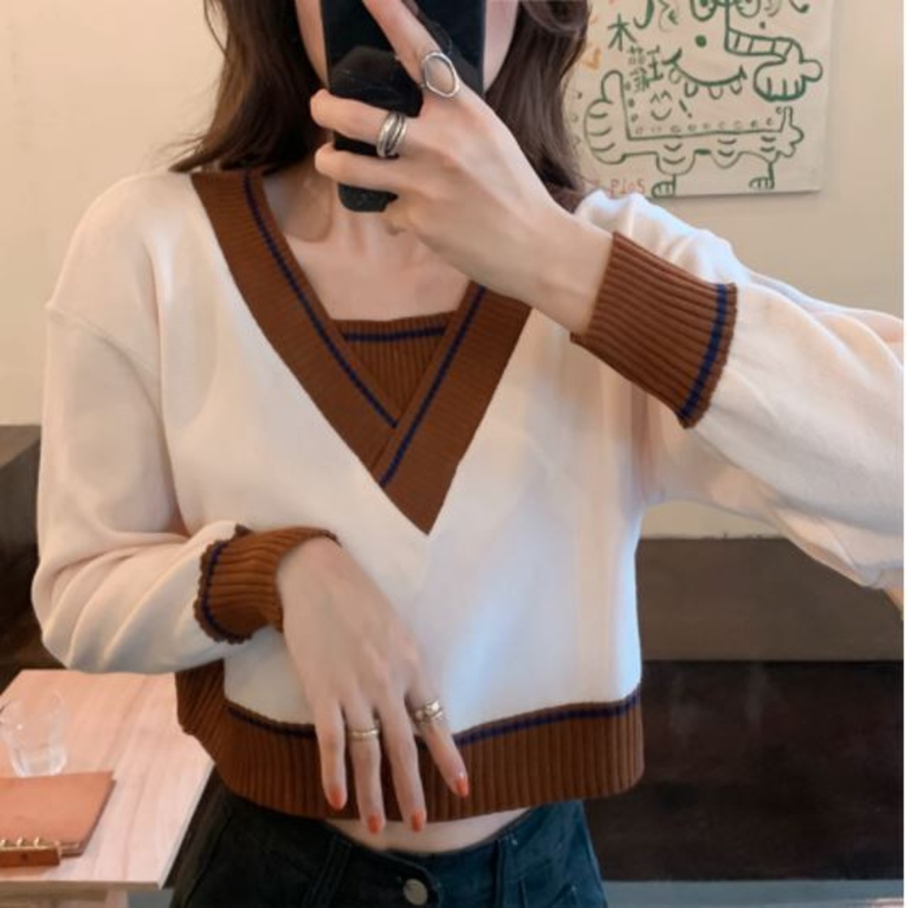 Vネックショートセーターは、トップスとして使い勝手が良く、多様なスタイルに合わせられるのが特徴です。女性らしいデザインとショート丈が、カジュアルからロマンティックな雰囲気まで、様々な場面で映えます。また、袖ありで長袖なので、春から秋まで長く着用でき、Vネックとワイドシルエットが女性らしさや個性を引き出してくれます。