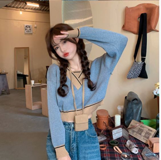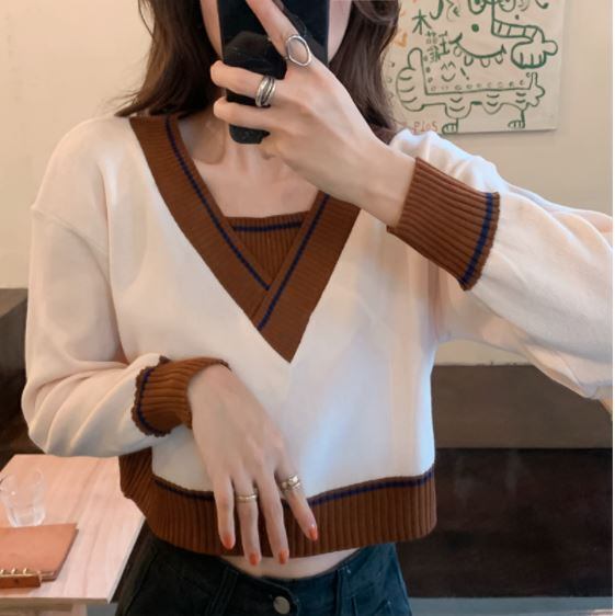 Vネックショートセーター トップス ショート丈 袖あり 長袖 Vネック ワイド イージー ニット かわいい 大人可愛い カジュアル おしゃれ お洒落 かっこいい レトロ 大人女子 こなれ感 ラフ ラブリー キュート ルーズ 個性的 モダン 主役級 存在感 無地 春 秋 10代 20代 30代 レディース 女性用 ママ オフィス OL 通勤 学生 通学 デート お出かけ 公園デビュー 休日 リゾート 旅行 着回し ファッション コーデ スタイル 楽ちん モテ 体系カバー 安い トレンド 流行