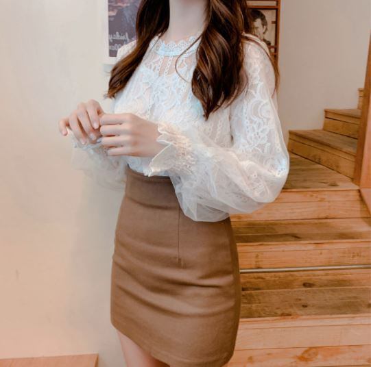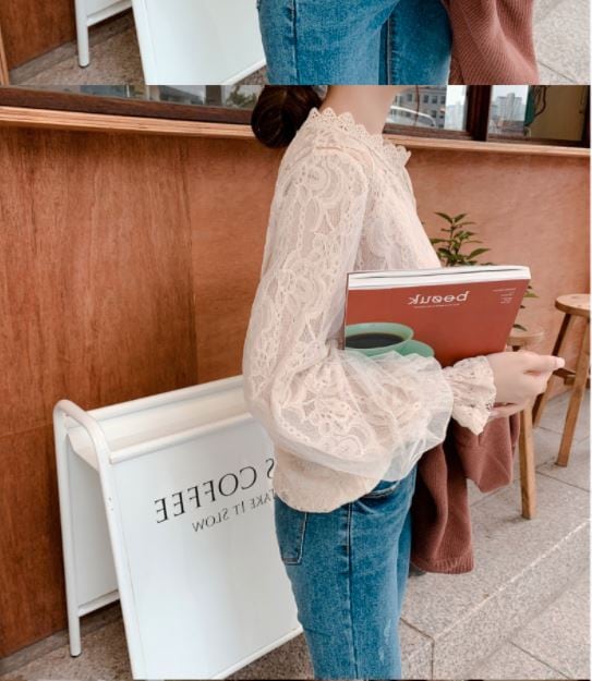 総レースがフェミニンなランタンスリープブラウスです。