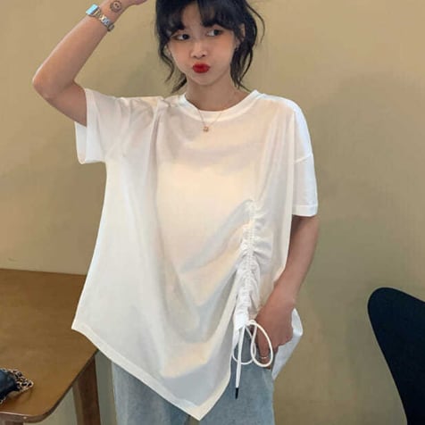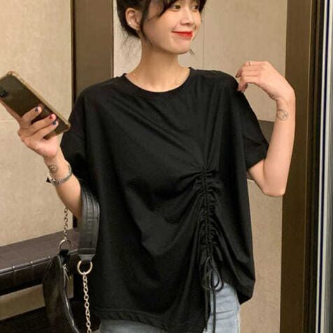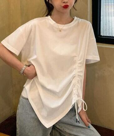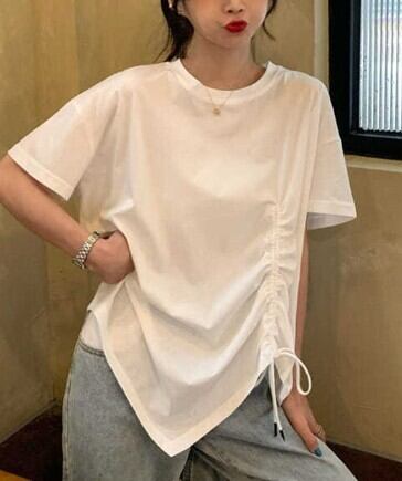 ギャザー入りTシャツ ブラック ホワイト トップス Tシャツ シャツ スリム 細身 ストレート スマート かわいい きれいめ シンプル 大人 上品 おしゃれ 大人可愛い 大人女子 こなれ感 ラフ クール モード系 セクシー エレガント 無地 春 秋 冬 誕生日 謝恩会 二次会 ハロウィン クリスマス バレンタイン レディース 女性用 学生 通学 デート お出かけ 女子会 お泊まり 休日 アウトドア パーティー イベント リゾート 旅行 ホテル レストラン 着回し 普段使い 韓国 韓国系 オルチャン ギフト
