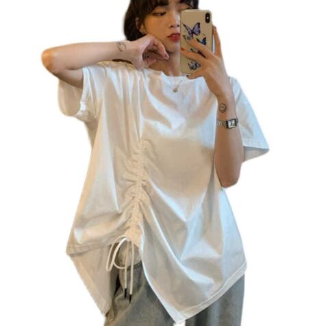 おしゃれでカジュアルなスタイルには欠かせないギャザー入りTシャツ。スリムなシルエットで、程よいフィット感が女性らしいシルエットを演出してくれます。一般的なロングTシャツよりも少し短めの着丈で、ボトムスのウエスト位置を高めに見せる効果も。ブラック、ホワイトの無地カラーなので、合わせるアイテムを選ばず、どんな着こなしにも合わせやすく、万能アイテムとして使用できます。