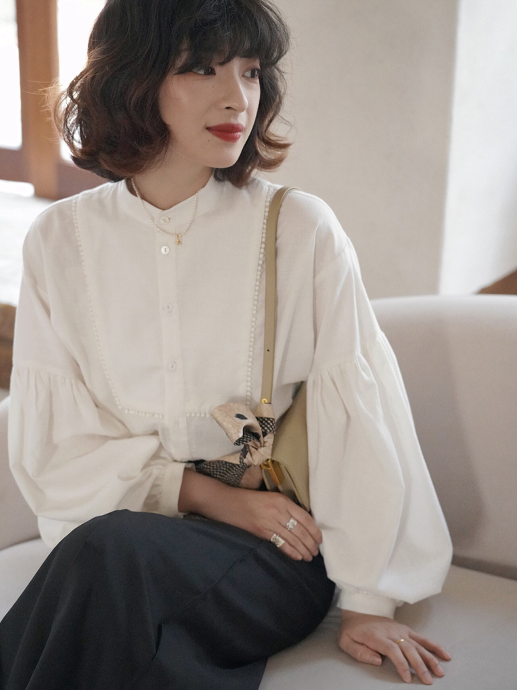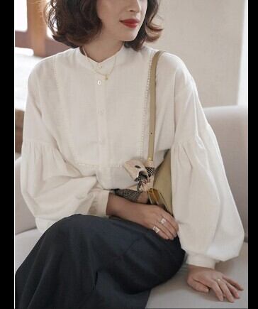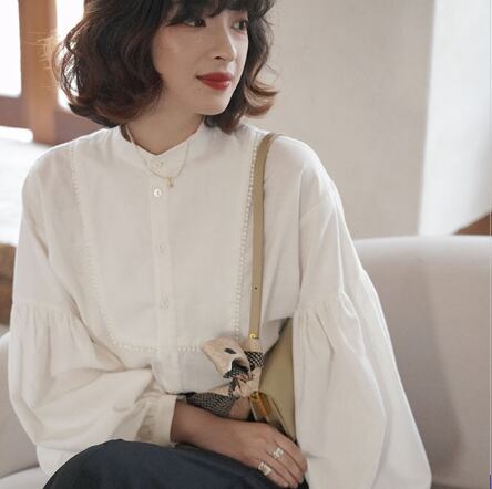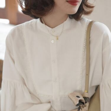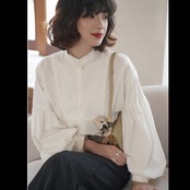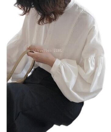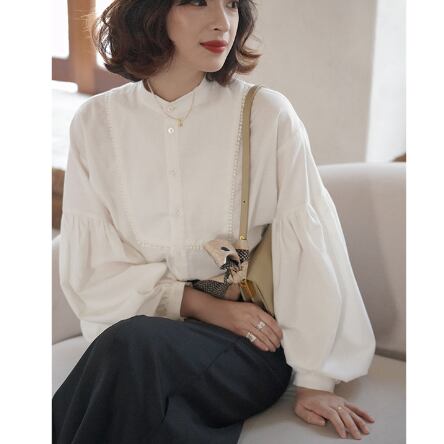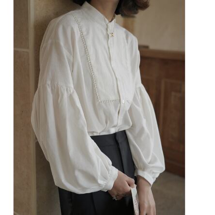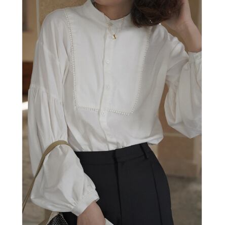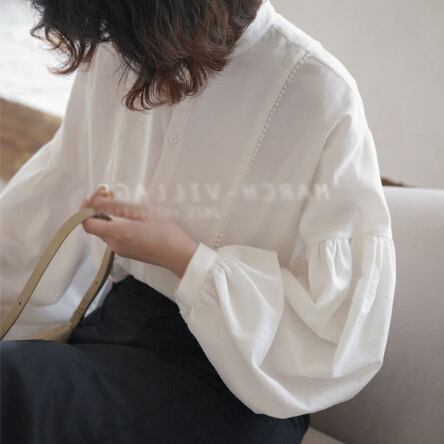 パフスリーブシャツ トップス シャツ ブラウス シンプル ホワイト 白 レギュラー丈 袖あり 長袖 ボリューム袖 パフスリーブ ラウンドネック ストレート シングルブレスト ボタン 大人女子 大人 上品 おしゃれ きれいめ シンプル エレガント レトロ レトロ風 こなれ感 ラフ 主役級 存在感 無地 春 スプリング 10代 20代 30代 40代 レディース 女性用 ママ オフィス ビジネス OL 通勤 学生 通学 着回し 普段使い 定番 細見え スタイル S M L