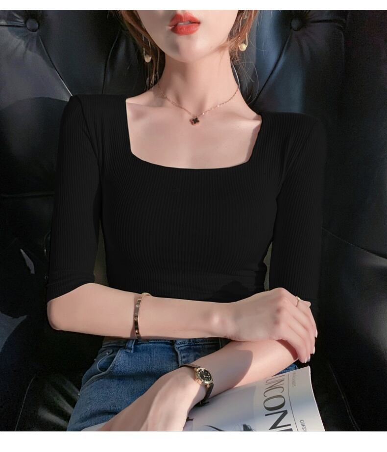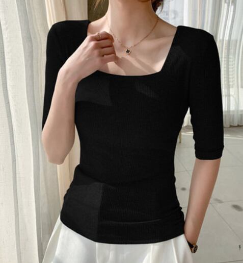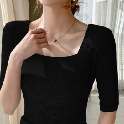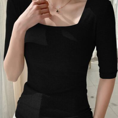 トップス 半袖 5分袖 スクエアネック タイト 細身 スマート リブ かわいい 大人可愛い きれいめ シンプル カジュアル 大人 おしゃれ お洒落 大人可愛い 大人女子 キュート ガーリー セクシー エレガント 主役級 存在感 無地 春 夏 10代 20代 30代 40代 レディース 女性用 ママ OL 学生 デート お出かけ 女子会 お泊まり 休日 着回し 普段使い 重ね着 韓国 韓国系 ファッション コーデ スタイル モテ新作 定番 送料無料 トレンド 流行 インポート 海外 人気 大人カジュアル