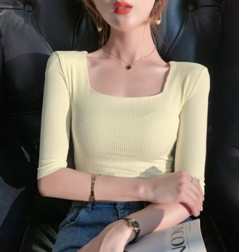 トップス 半袖 5分袖 スクエアネック タイト 細身 スマート リブ かわいい 大人可愛い きれいめ シンプル カジュアル 大人 おしゃれ お洒落 大人可愛い 大人女子 キュート ガーリー セクシー エレガント 主役級 存在感 無地 春 夏 10代 20代 30代 40代 レディース 女性用 ママ OL 学生 デート お出かけ 女子会 お泊まり 休日 着回し 普段使い 重ね着 韓国 韓国系 ファッション コーデ スタイル モテ 新作 定番 送料無料 トレンド 流行 インポート 海外 人気 大人カジュアル