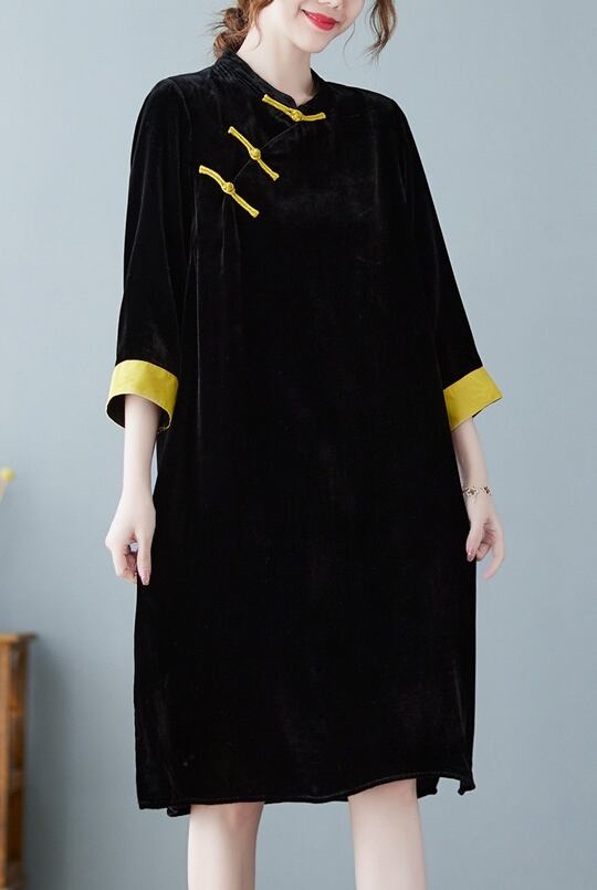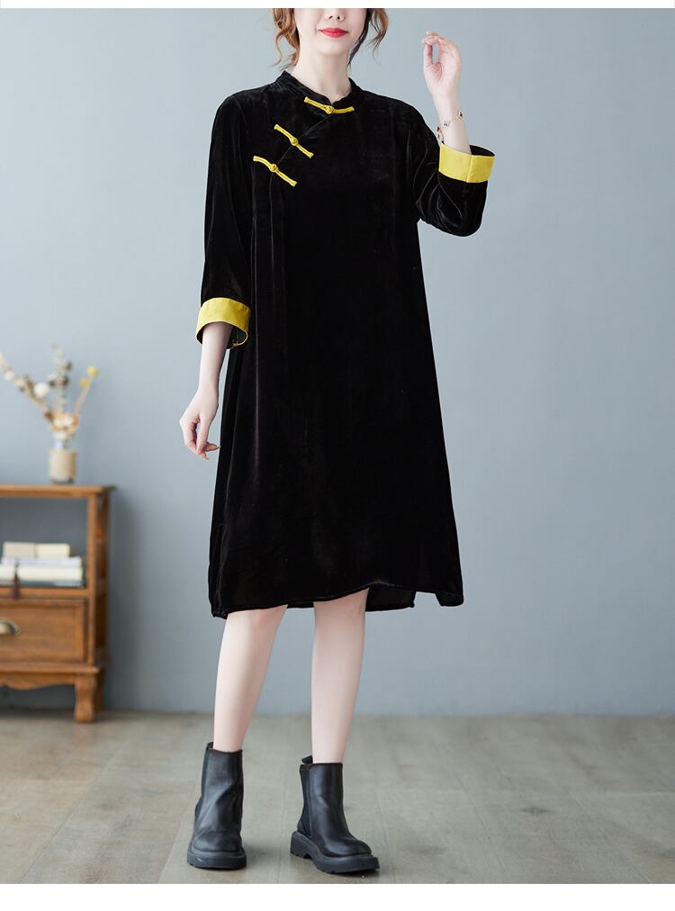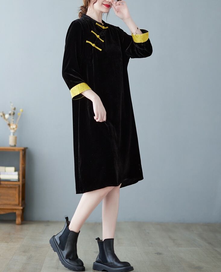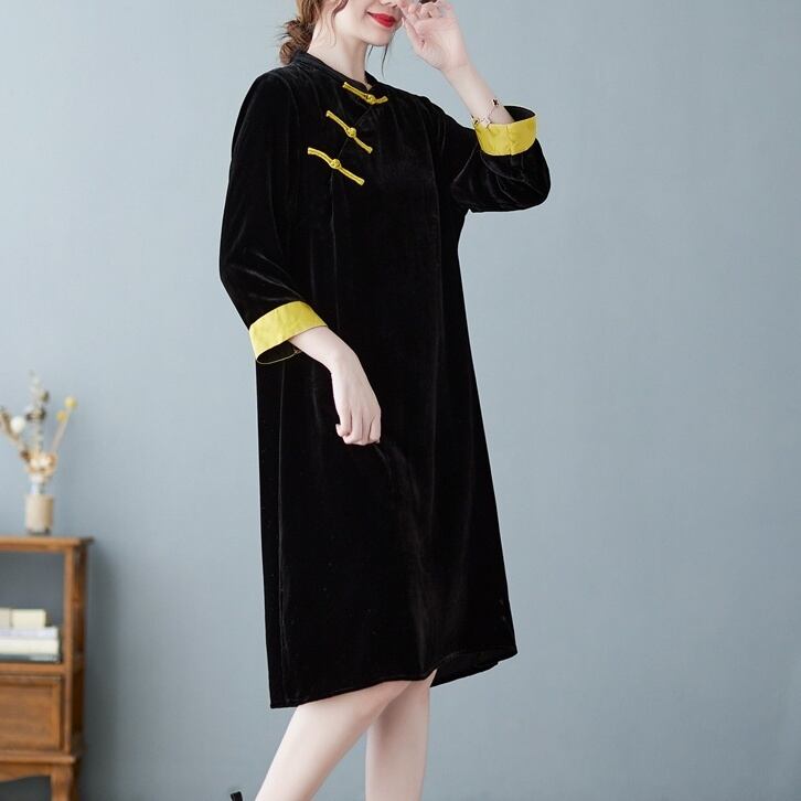 ミニワンピース ワンピース ミニ ミニ丈 7分袖 七分袖 スタンドカラー かわいい 大人可愛い おしゃれ お洒落 レトロ アジアン 大人可愛い 大人女子 ラブリー キュート ガーリー 個性的 主役級 存在感 春 秋 冬 10代 20代 30代 レディース 女性用 ママ デート お出かけ 女子会 お泊まり 休日 着回し 普段使い 韓国 韓国系 ファッション コーデ スタイル モテ 新作 定番 送料無料 トレンド 流行 インスタ映え インポート 海外 人気 大人カジュアル チャイナ風 コスパ バイカラー