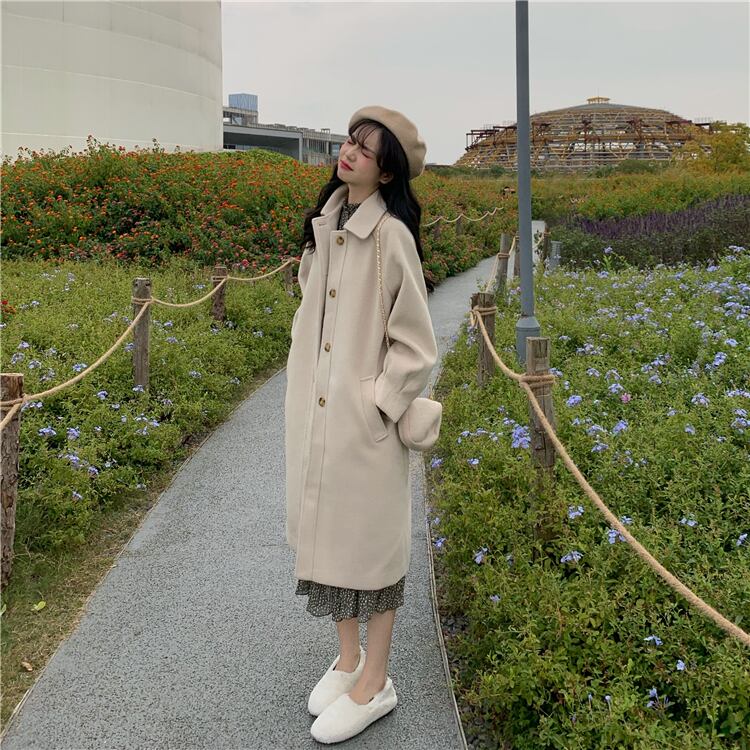 ウールコート アウター コート ジャケット ロングコート 黒 ブラック ベージュ ミディアム丈 長袖 ポロカラー ストレート ふわふわ ポケット 前開き ボタン 裏地あり ウール 厚手 かわいい 大人可愛い きれいめ シンプル 大人 おしゃれ レトロ 大人女子 こなれ感 ラフ ガーリー 主役級 存在感 抜け感 無地 秋 冬 10代 20代 通勤 通学 デート お出かけ 女子会 休日 ホテル ガーデン レストラン 着回し 普段使い ファッション コーデ スタイル 暖かい 定番 トレンド M L 色展開