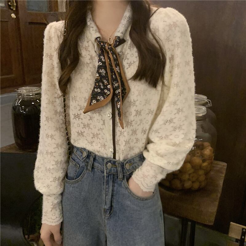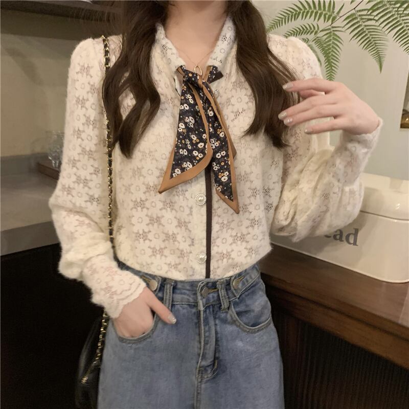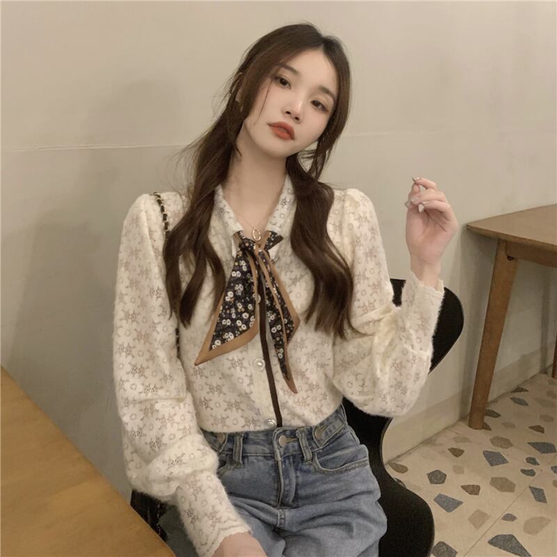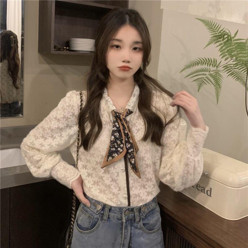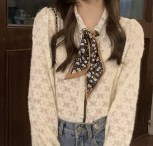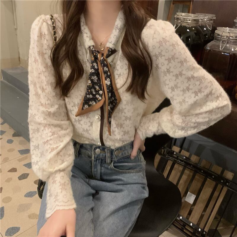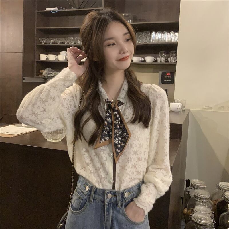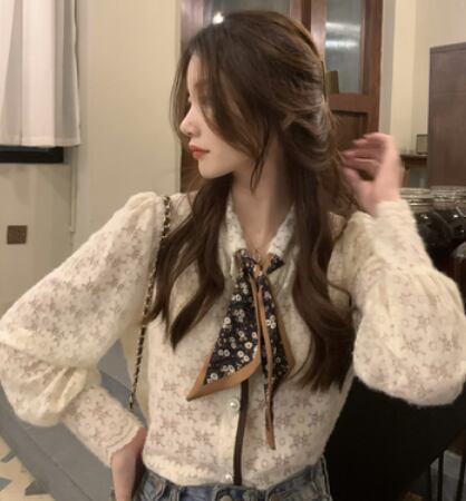 レトロ花柄ネクタイ付き長袖ブラウス トップス シャツ ブラウス 長袖 レース 刺繍 リボン かわいい 大人可愛い きれいめ シンプル 大人 上品 おしゃれ レトロ 大人可愛い 大人女子 ラブリー キュート ガーリー 無地 柄 小花柄 フラワー 春 秋 誕生日 バレンタイン 10代 20代 30代 40代 レディース ママ オフィス ビジネス OL 通勤 学生 通学 デート 女子会 休日 イベント ガーデン レストラン お散歩 ニットパンツ ほっこり 着回し ファッション コーデ スタイル 楽ちん モテ
