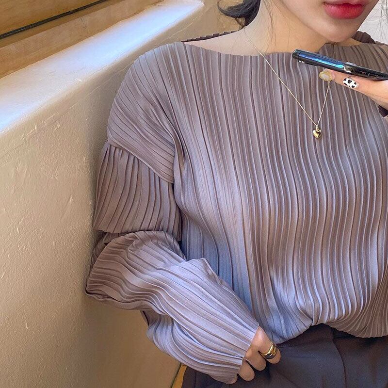 プリーツ長袖カットソー トップス ブラウス カットソー 長袖 0 ラウンドネック プリーツ かわいい 大人可愛い きれいめ シンプル カジュアル 大人 上品 おしゃれ 大人可愛い 大人女子 こなれ感 ラフ クール モード系 エレガント 無地 春 秋 10代 20代 30代 40代 50代 60代 レディース ママ 女の子 オフィス ビジネス OL 通勤 学生 通学 デート お出かけ 女子会 お泊まり 休日 旅行 高原 ホテル ガーデン レストラン お散歩 人気 着回し 普段使い ファッション コーデ