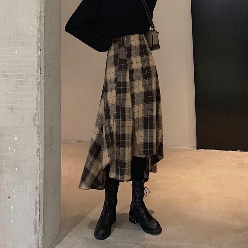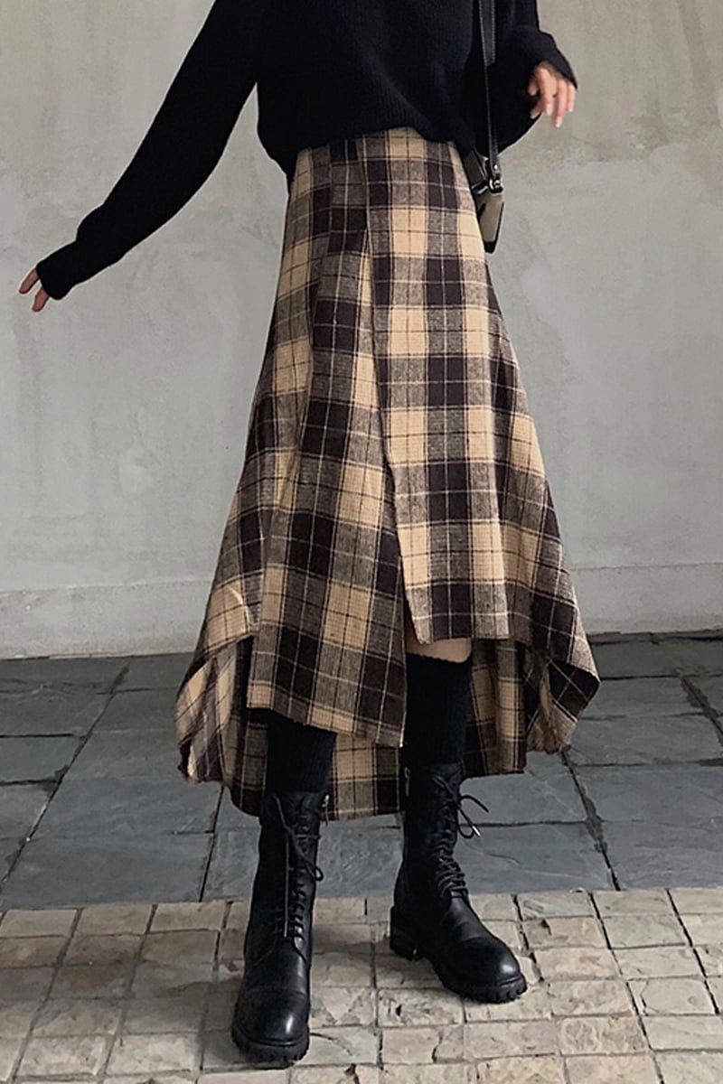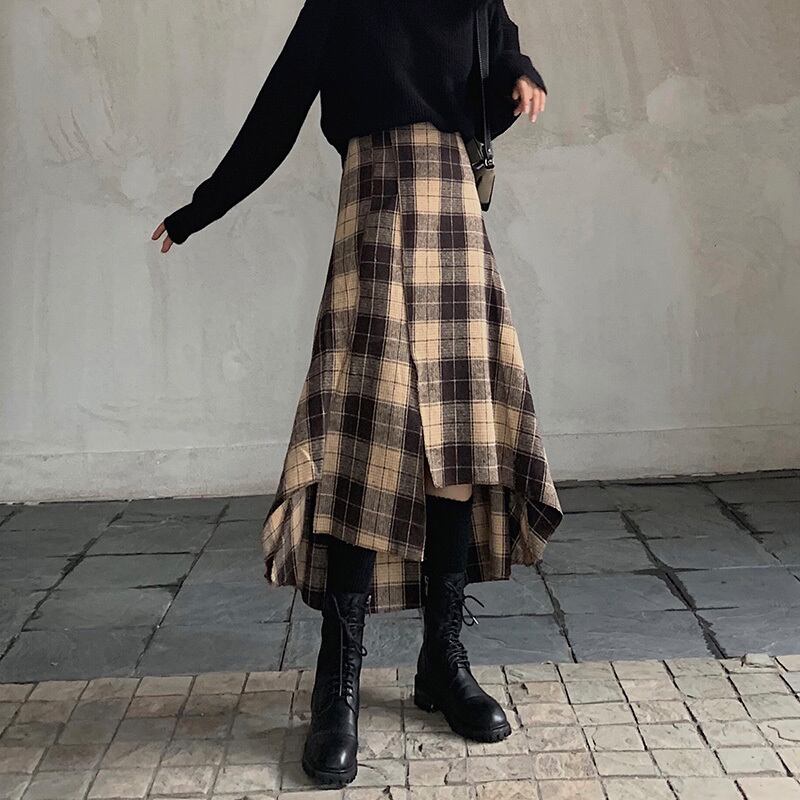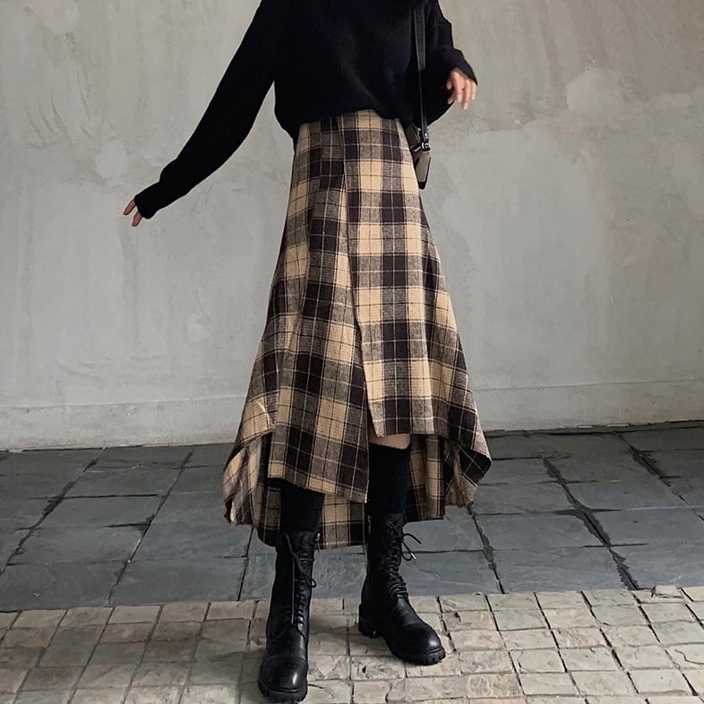 アシンメトリースカート ロングスカート スカート ボトムス ロング ロング丈 フレア セミフレア タイト 細身 Aライン かわいい 大人可愛い おしゃれ お洒落 レトロ 大人可愛い 大人女子 キュート ガーリー 個性的 主役級 存在感 柄 チェック柄 春 秋 冬 10代 20代 30代 レディース 女性用 ママ 女の子 学生 デート お出かけ 女子会 お泊まり 休日 着回し 韓国 韓国系 ファッション コーデ モテ 新作 定番 送料無料 トレンド 流行 インスタ映え 着痩せ 体型カバー ハイウエスト