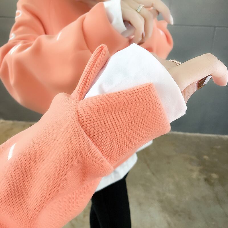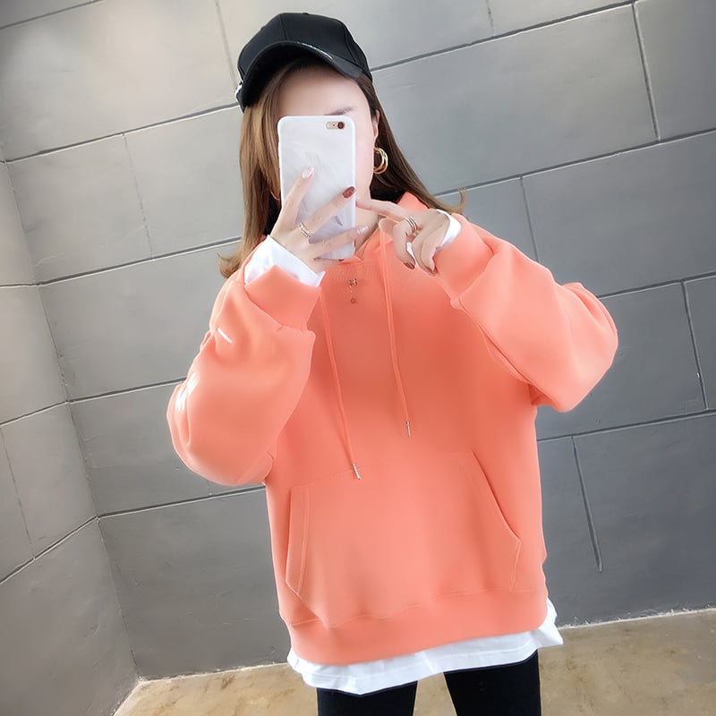 袖口と裾から白がのぞく、重ね着風デザインのオーバーサイズパーカー。