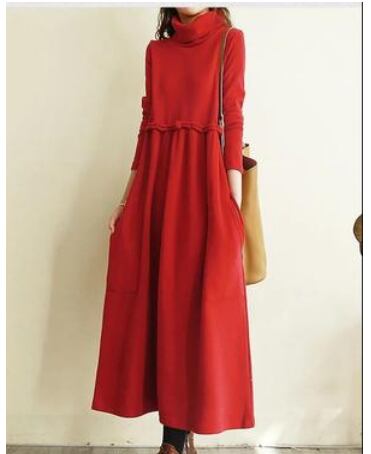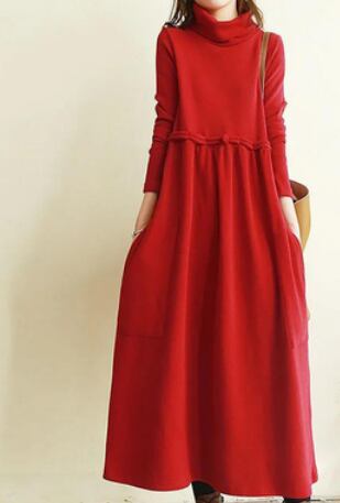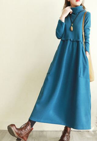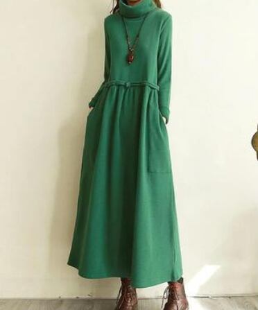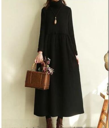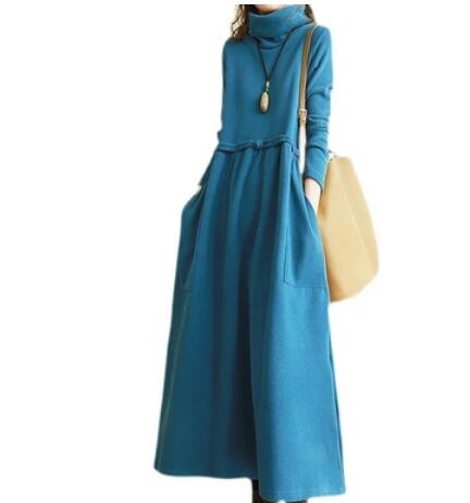 とても暖かい生地のタートルネックロングワンピースです。