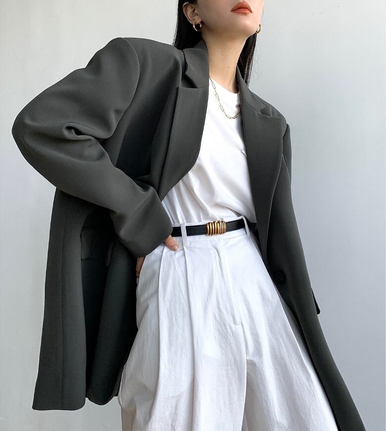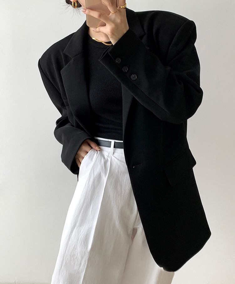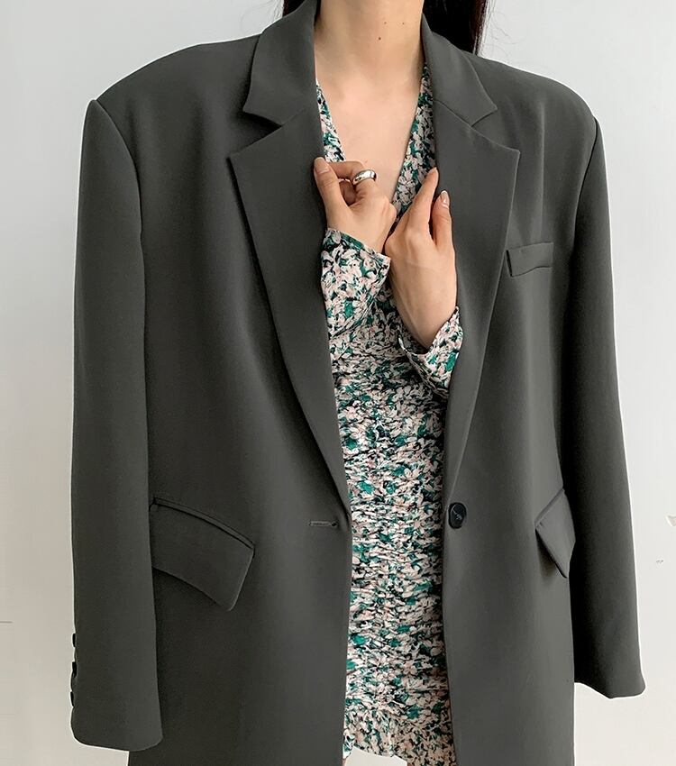 ゆるめのサイズ感で今っぽくおしゃれに決まるワンボタンのテーラードカラージャケット。
