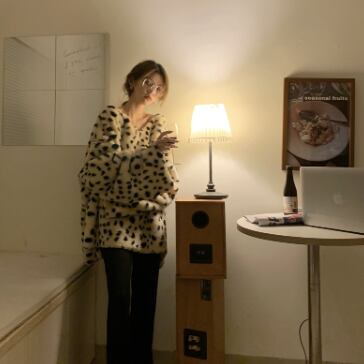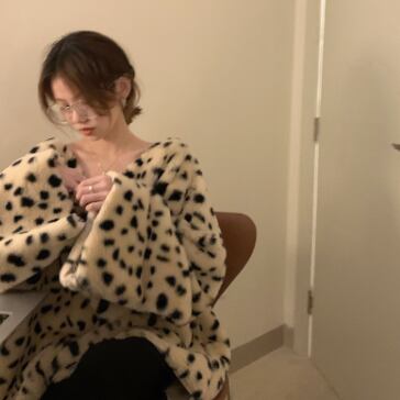 ヒョウ柄が特徴的なもこもこトップスです。