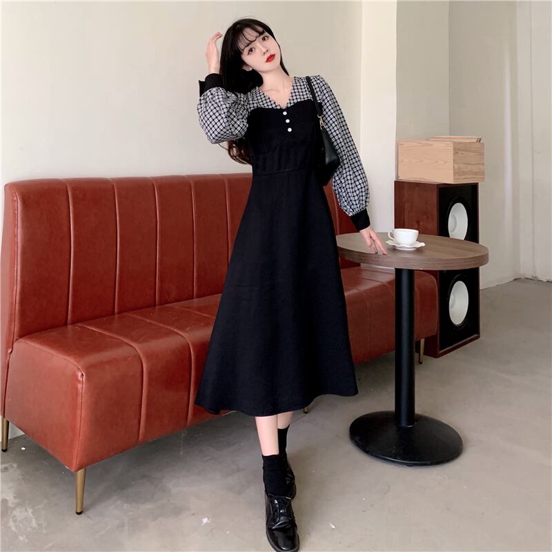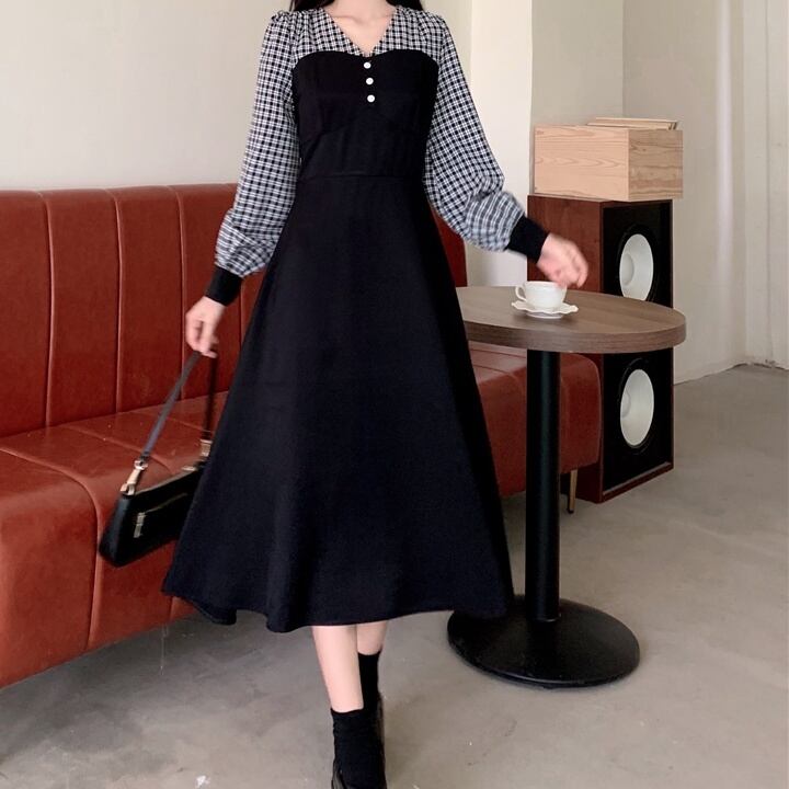 切り替えデザインワンピース ワンピース 膝下 ミモレ ミモレ丈 長袖 Vネック フレア かわいい 大人可愛い 大人 おしゃれ お洒落 大人可愛い 大人女子 ラブリー キュート ガーリー 主役級 存在感 無地 チェック柄 春 秋 冬 10代 20代 30代 レディース 女性用 ママ デート お出かけ 女子会 お泊まり 休日 着回し 普段使い 韓国 韓国系 ファッション コーデ スタイル モテ 新作 定番 送料無料 トレンド 流行 大きめ ビッグサイズ ゆったり ゆる インポート 海外 人気 大人カジュアル