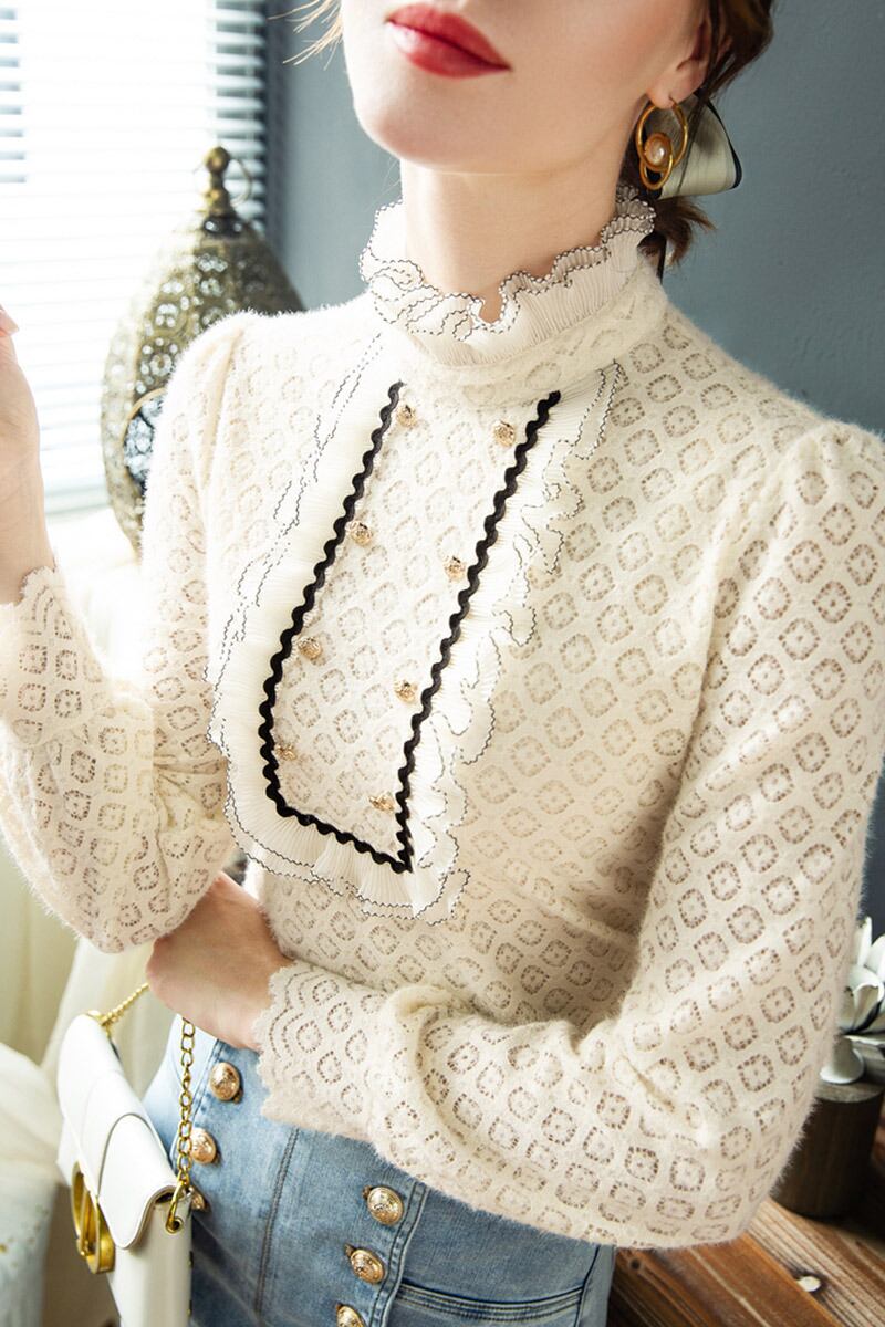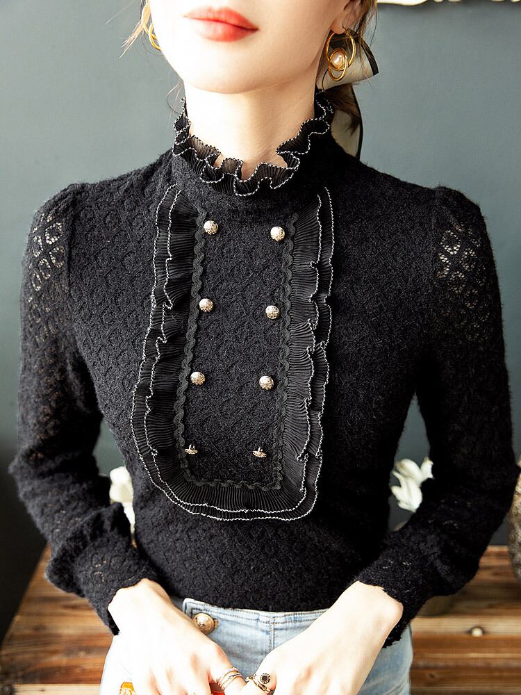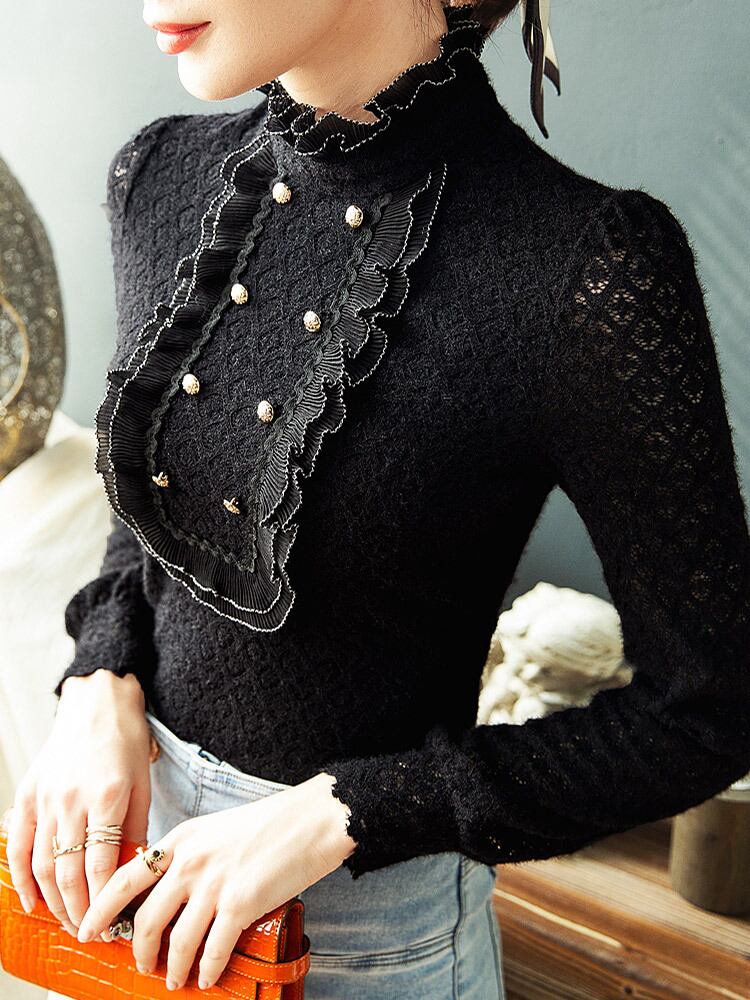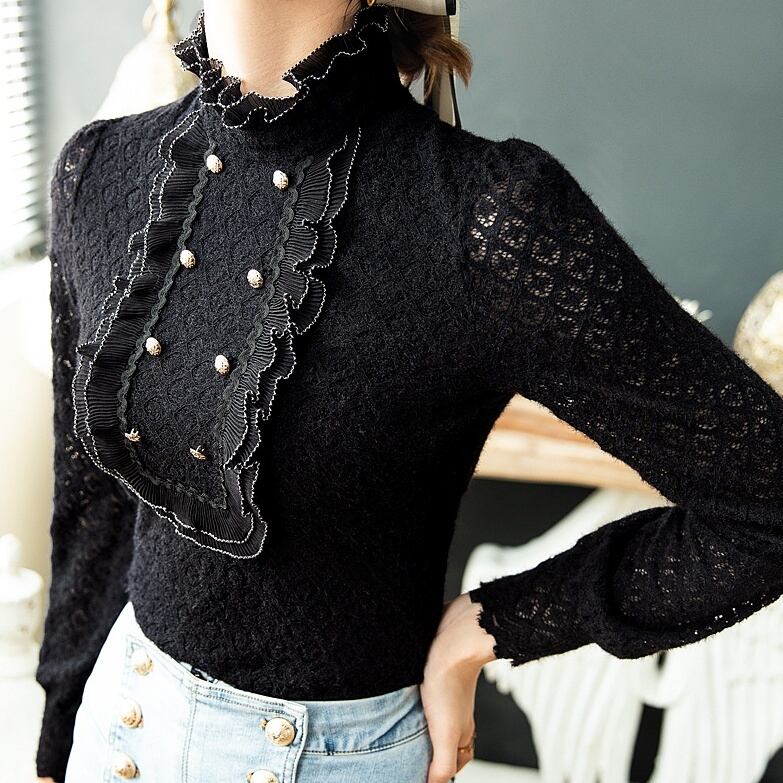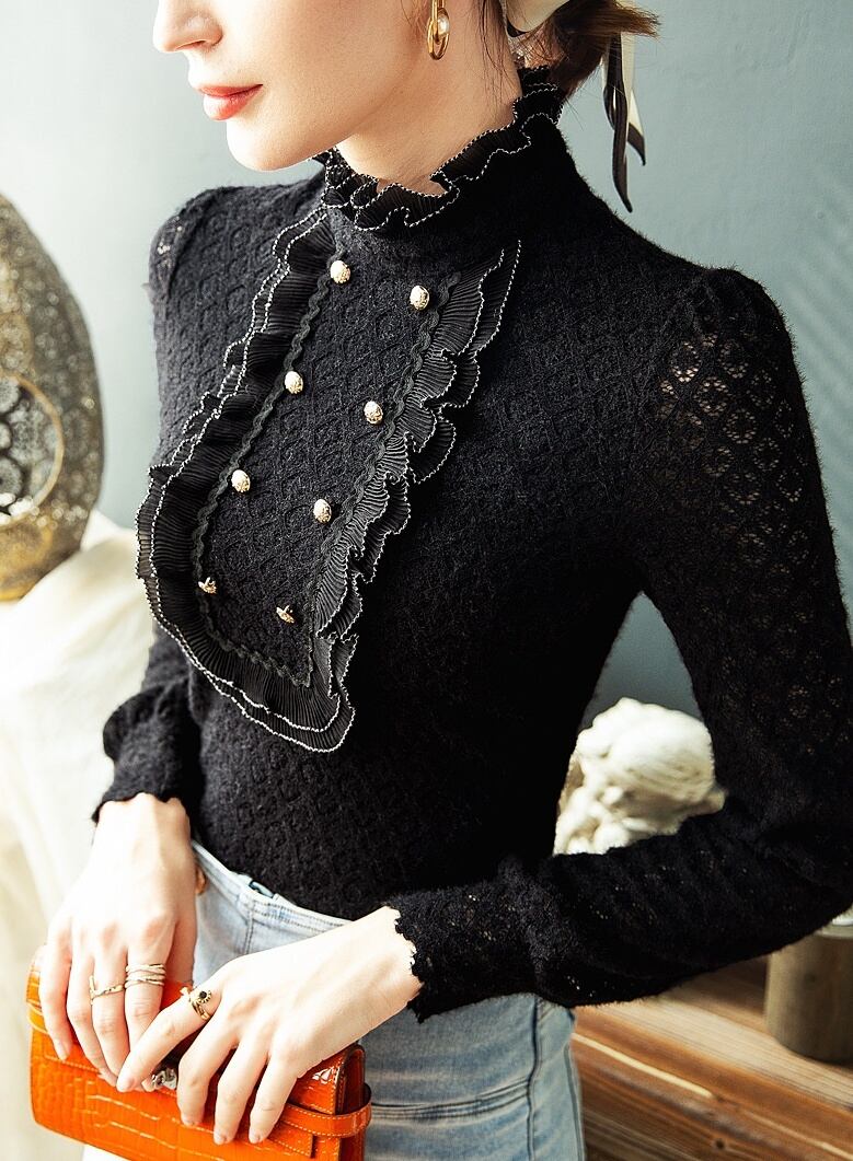 トップス ブラウス 長袖 ハイネック レース 刺繍 フリル 春 秋 入学式 入園式 卒業式 卒園式 10代 20代 30代 レディース 女性用 ママ デート お出かけ 女子会 お泊まり 休日 イベント 着回し 韓国 韓国系 ファッション スタイル モテ 新作 定番 送料無料 トレンド 流行 インスタ映え インポート 大人カジュアル フォーマル きれいめ 上品 セレブ コスパ 女子力 デートコーデ モテコーデ フェミニン 合わせやすい ボタン パーティーコーデ 白 黒