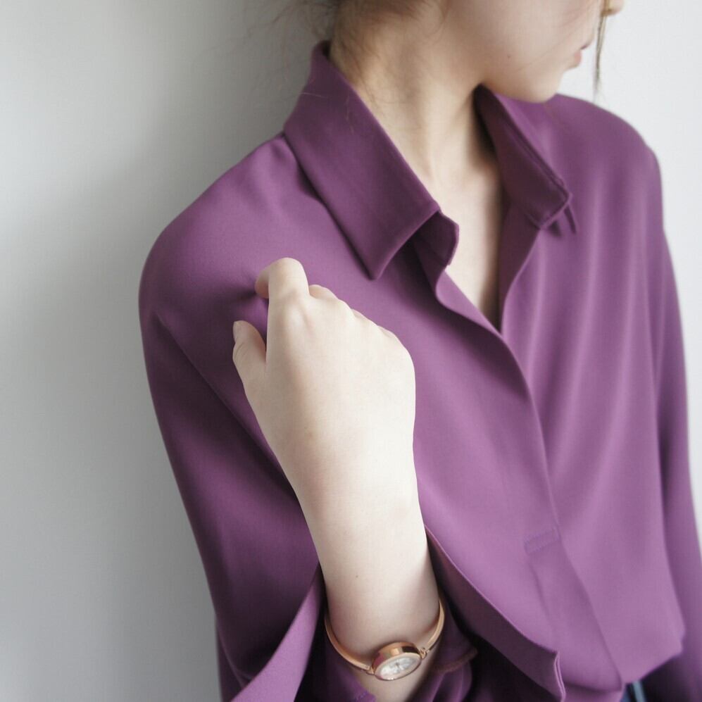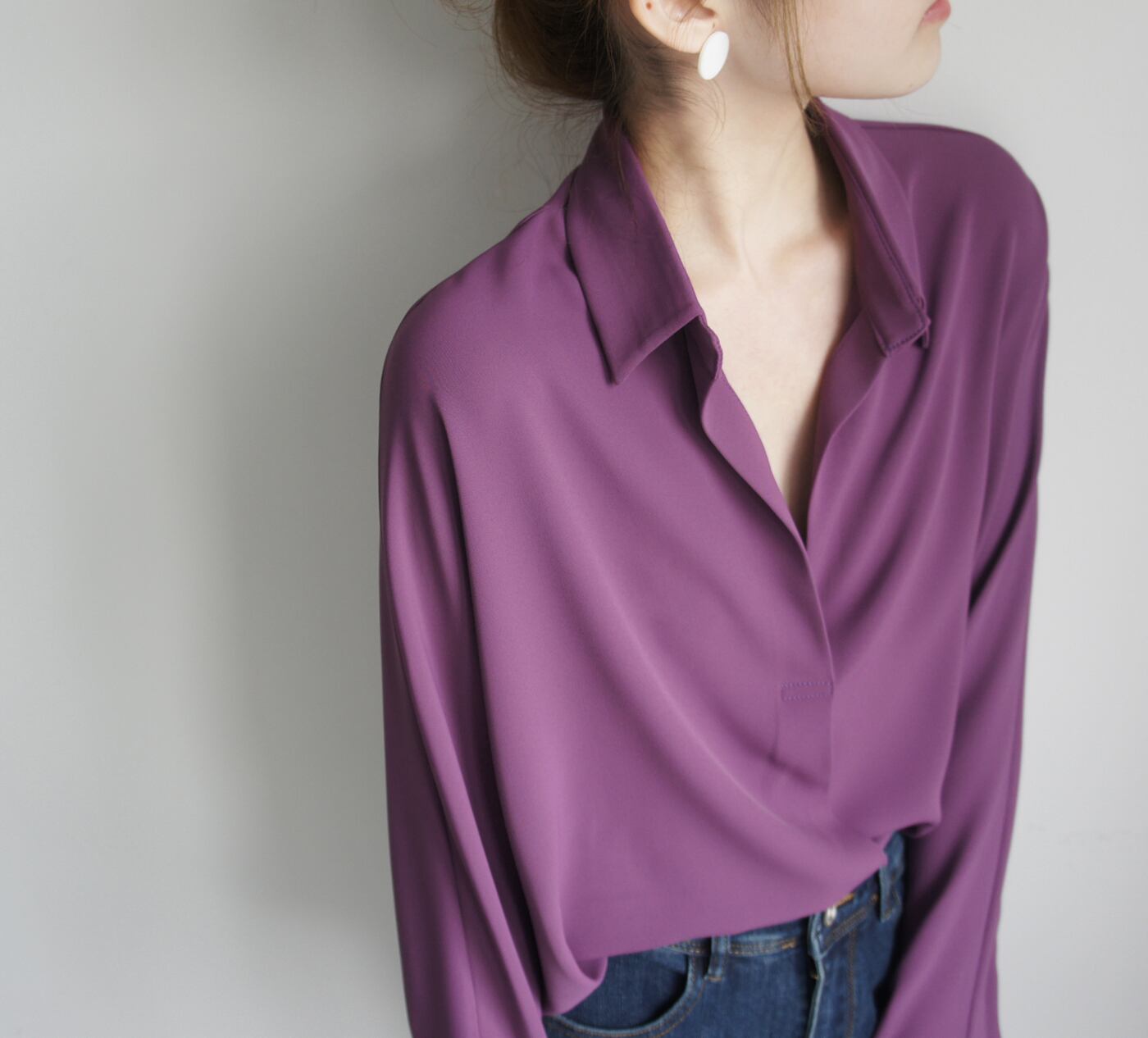 シンプルシャツ パープル トップス シャツ ブラウス スリム 細身 ストレート スマート かわいい きれいめ シンプル 大人 上品 おしゃれ 大人可愛い 大人女子 こなれ感 ラフ クール モード系 セクシー エレガント 無地 春 秋 冬 誕生日 謝恩会 二次会 ハロウィン クリスマス バレンタイン レディース 女性用 学生 通学 デート お出かけ 女子会 お泊まり 休日 アウトドア パーティー イベント リゾート 旅行 ホテル レストラン 着回し 普段使い 韓国 韓国系 オルチャン ファッション コーデ