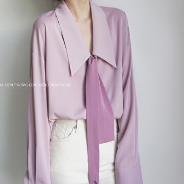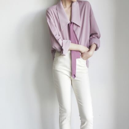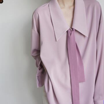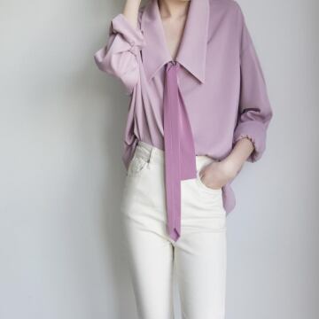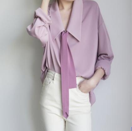 パープルの色合いが美しい、ネクタイブラウスです。シンプルで上品なデザインで、スラッと細身のシルエットが、大人女子にぴったり。さまざまなシーンで活躍する大人可愛い一枚です。