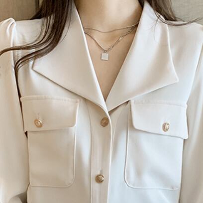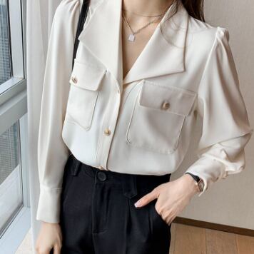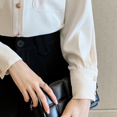 大人可愛いVネック長袖シャツが新登場!シンプルながらも華やかさを兼ね備えたデザインは、10代から40代までの幅広い層の女性に人気。清楚な雰囲気を与え、オフィスやビジネスシーンにはもちろん、デートや女子会などカジュアルにもぴったりな一枚です。
