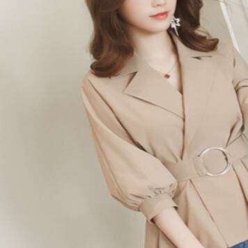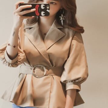不動の定番、トレンチコートをイメージしたトップスが登場しました。カーキの無地で、シンプルでありながら、スタイリッシュな印象を与えてくれます。シャツとジャケットを合わせたような、上品で大人の着こなしを叶えてくれる一枚です。