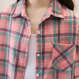 チェック柄シャツ トップス シャツ カジュアル ピンク イエロー 黄色 レギュラー丈 袖あり 長袖 襟付き ストレート シングルブレスト ボタン 綿 コットン 大人女子 大人 上品 おしゃれ デイリーウェア レトロ レトロ風 こなれ感 ラフ ルーズ シルエット 主役級 存在感 柄 チェック柄 秋 オータム 冬 ウインター 10代 20代 30代 40代 レディース 女性用 ママ オフィス ビジネス OL 通勤 学生 通学 着回し 普段使い S M L XL 2XL