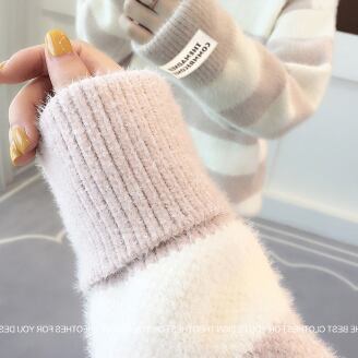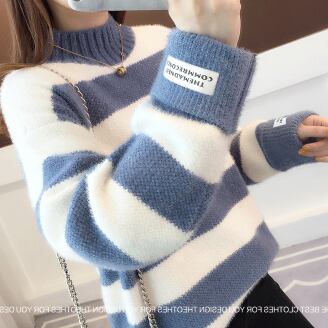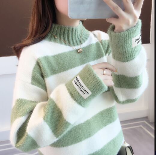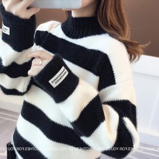 フリースセーター トップス ニット カジュアル ブラック 黒 ブルー 青 ピンク グリーン 緑 ショート丈 袖あり 長袖 ハーフタートルネック ハイネック ストレート 大人女子 大人 上品 おしゃれ デイリーウェア レトロ レトロ風 こなれ感 ラフ ルーズ シルエット キュート かわいい 女子 個性的 デザイン 主役級 存在感 柄 ストライプ 縞模様 ボーダー 冬 ウインター 10代 20代 30代 レディース 女性用 着回し 普段使い S M L XL 2XL 3XL