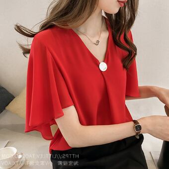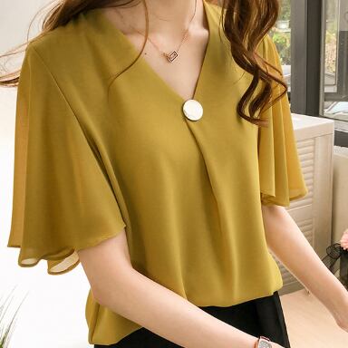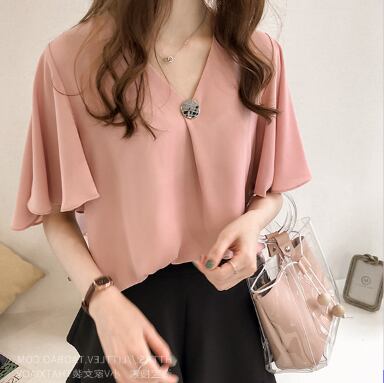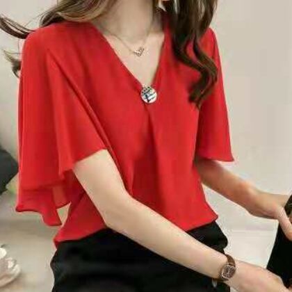 スタイリッシュなVネックとシフォン素材が春夏の大人可愛いスタイルを演出してくれるトップス。無地のシンプルなデザインで、上品でありながらおしゃれさも併せ持つ一枚です。カラバリ豊富で、様々なコーデに合わせることができます。大人女子にぴったりの、大きすぎず小さすぎないV字の開きはデコルテを美しく見せ、半袖で二の腕もカバーしてくれます。オフィスやビジネスシーンにもピッタリな一枚です。贈り物にも最適です。このトップスを着ると、あなたも一気におしゃれ上級者になれますよ! 注意点: 洗濯時は手洗いがおすすめです。