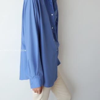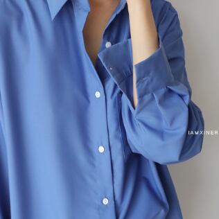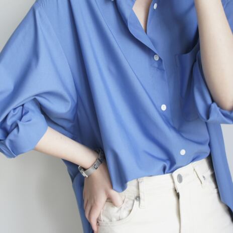 鮮やかなブルーが綺麗な長袖ブラウスです。