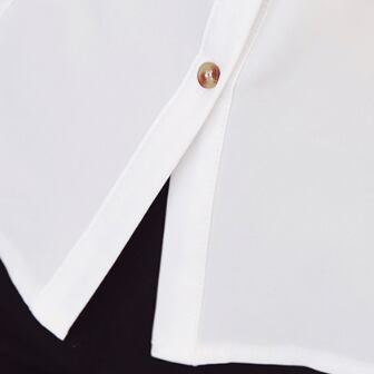 袖の内側にロールアップベルト付きで、長袖でも五分袖でも着られる2ウェイ仕様のシンプルブラウス。