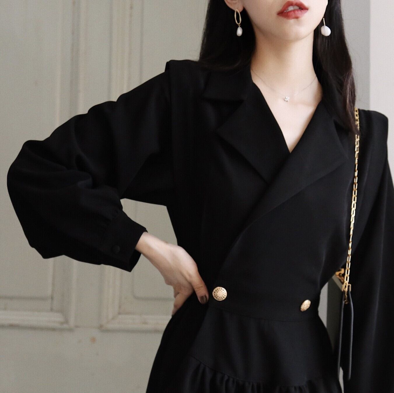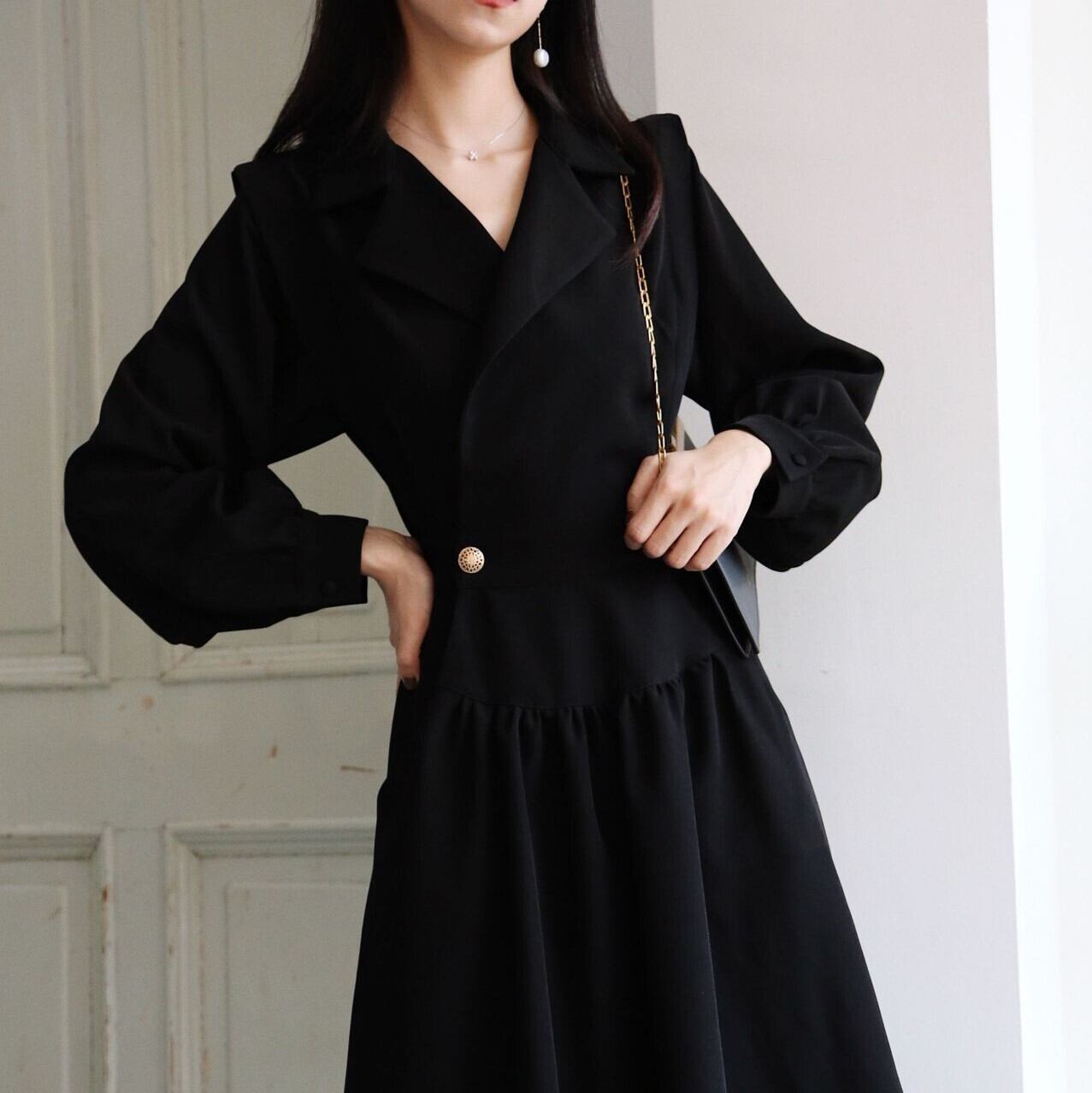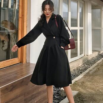 折り返しワンピース ブラック ワンピース ひざ丈 膝上 スリム 細身 ストレート スマート かわいい きれいめ シンプル 大人 上品 おしゃれ 大人可愛い 大人女子 こなれ感 ラフ クール モード系 セクシー エレガント 無地 春 秋 冬 誕生日 謝恩会 二次会 ハロウィン クリスマス バレンタイン レディース 女性用 学生 通学 デート お出かけ 女子会 お泊まり 休日 アウトドア パーティー イベント リゾート 旅行 ホテル レストラン 着回し 普段使い 韓国 韓国系 オルチャン ファッション コーデ