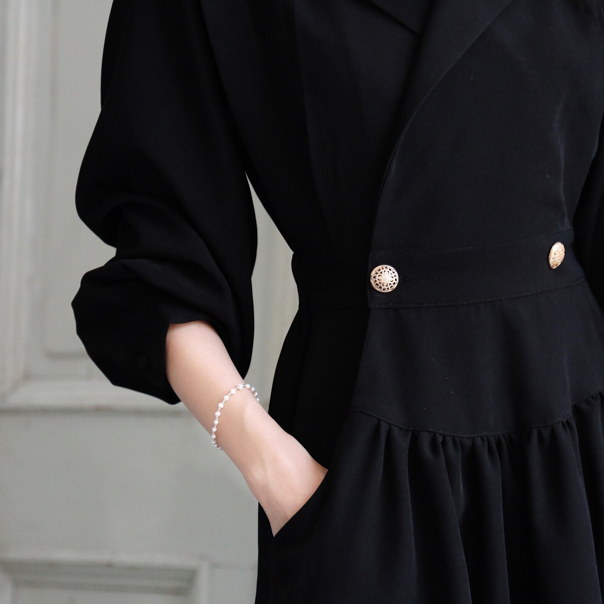 フロントのゴールドのボタンがポイントです。