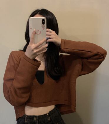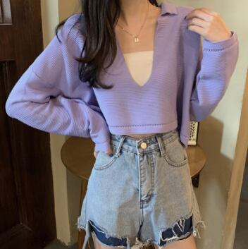 Vネックプルオーバー トップス カットソー シンプル スポーティ ブラック 黒 ホワイト 白 ブラウン 茶色 パープル 紫 グリーン 緑 ミニ丈 ショート丈 袖あり 長袖 Vネック ワイド 大人女子 大人 上品 おしゃれ デイリーウェア レトロ レトロ風 こなれ感 ラフ ルーズ シルエット キュート かわいい 女子 個性的 デザイン 主役級 存在感 無地 秋 冬 10代 20代 レディース 女性用 女の子 学生 通学 デート お出かけ 女子会 着回し 普段使い ワンサイズ