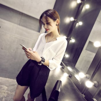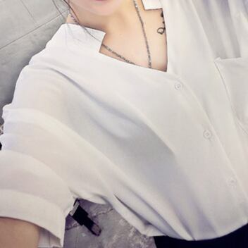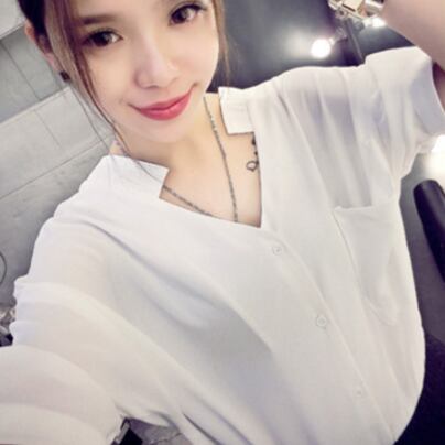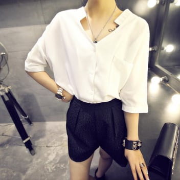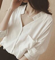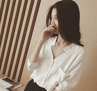 シンプルなVネックホワイトブラウスです。
