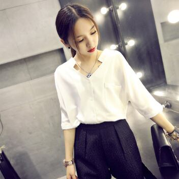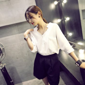 Vネックが女性らしい印象を与えてくれるホワイトブラウス。程よくシェイプされた細身のシルエットが大人かわいく、スリムに着こなせます。5分袖で季節に合わせて長期に活躍していただけます。シンプルな無地デザインは、様々なシーンで使いやすく、オフィスやビジネス、デートや女子会はもちろん、休日や就活にもぴったりです。