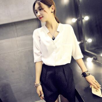Vネットホワイトブラウス トップス ブラウス 白シャツ 白トップス 5分袖 Vネック スリム 細身 かわいい 大人可愛い きれいめ シンプル カジュアル 大人 上品 おしゃれ かっこいい 大人可愛い 大人女子 クール モード系 無地 春 夏 10代 20代 30代 40代 50代 60代 レディース オフィス ビジネス OL 通勤 学生 通学 デート 女子会 休日 就活 レストラン 着回し ファッション コーデ スタイル モテ プレゼント 定番 安い お得 合わせやすい 好感度 イメージアップ 清潔感