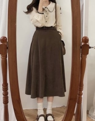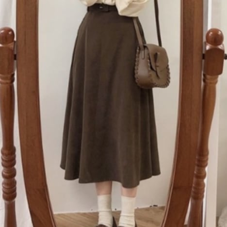 甘すぎず、大人可愛い秋スカートが新登場!ミモレ丈のセミフレアシルエットで美しいラインを演出します。 可愛さとおしゃれさを兼ね備えたデザインで、上品かつカジュアルに着こなせる万能アイテムです。また付属のベルトも付いているので、トップスをインして着用する事もできます。 無地なので、様々なコーディネートに合わせやすく着回し力バツグン!年齢層も10代から50代まで幅広く対応しています。この秋、公園デビューや女子会、デートなど、どんなシーンにもマッチします。S,M,L,XLの4サイズ展開で、茶色のブラウンカラーもあります。清潔感と足長効果も期待でき、イメージアップにもピッタリです。自分の個性をどんどん演出して、大人可愛いスタイルを楽しみましょう!