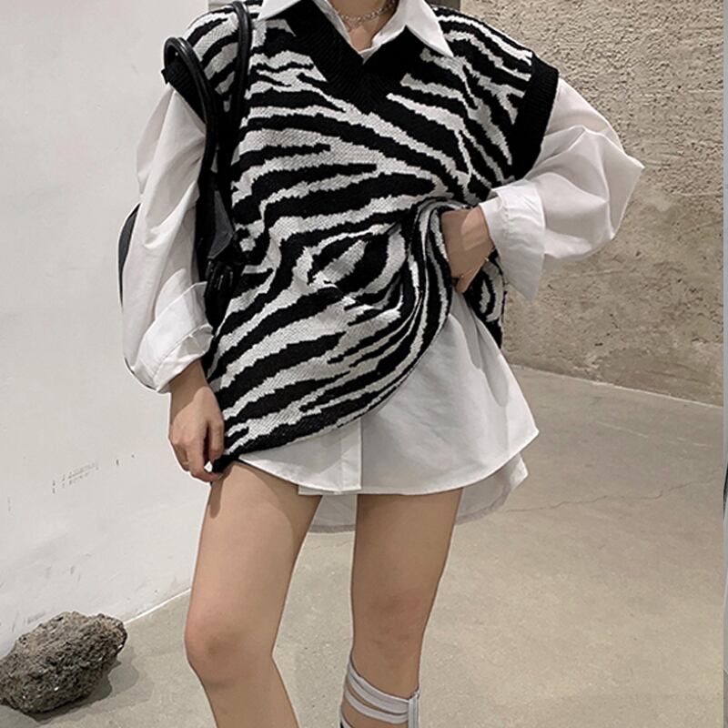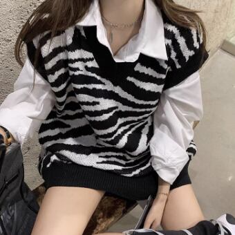 ゼブラ柄ニットベスト