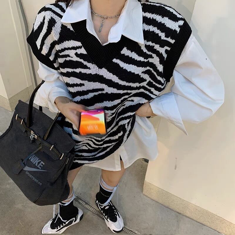 ゼブラ柄ベスト トップス ニット カジュアル ブラック 黒 ミディアム丈 袖なし ノースリーブ ラウンドネック ワイド 大人女子 大人 上品 おしゃれ かっこいい クール デイリーウェア レトロ レトロ風 こなれ感 ラフ ルーズ シルエット 個性的 デザイン 主役級 存在感 柄 セブラ柄 春 スプリング 秋 オータム 10代 20代 レディース 女性用 学生 通学 デート お出かけ 女子会 着回し 普段使い S M L XL 3XL 大きいサイズ プラスサイズ