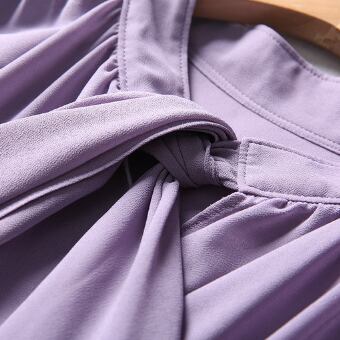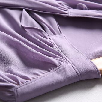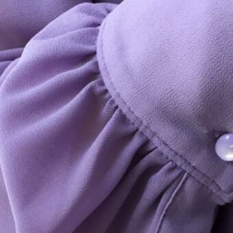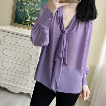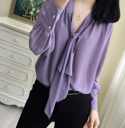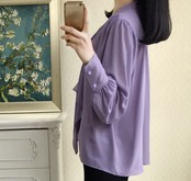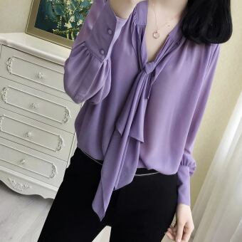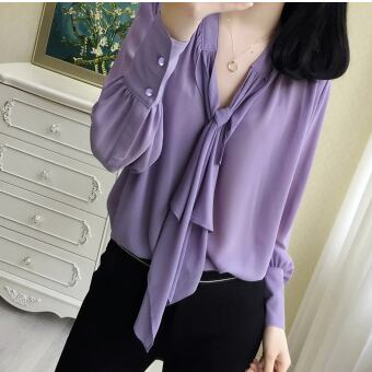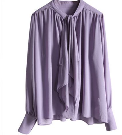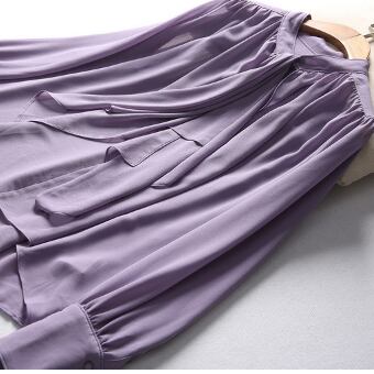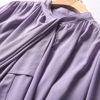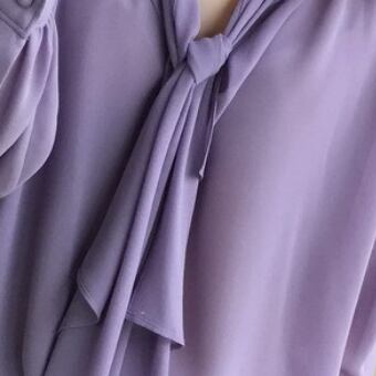 シンプルなネクタイ付きのパープル長袖ブラウスです。