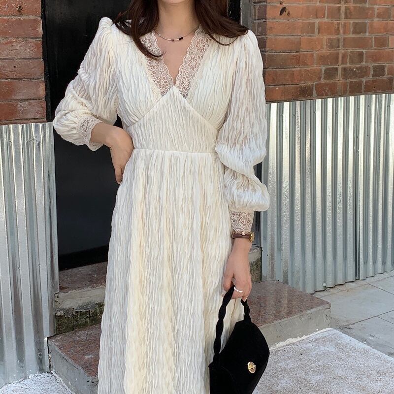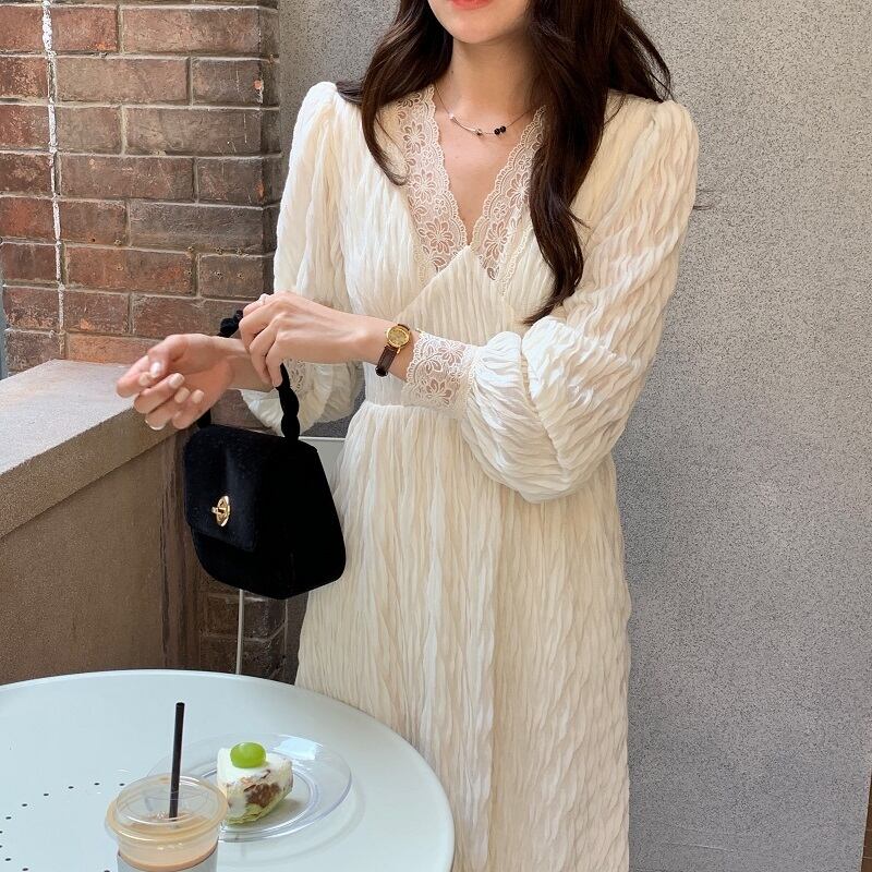 Vネックのロングワンピースです。