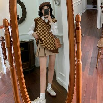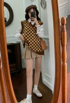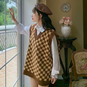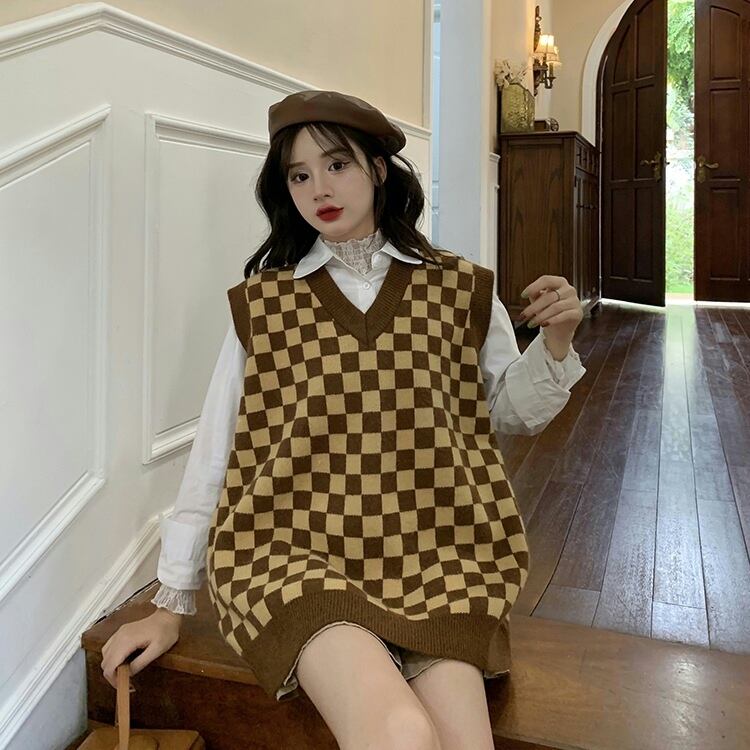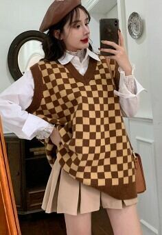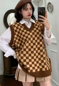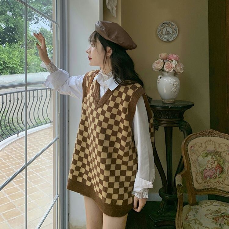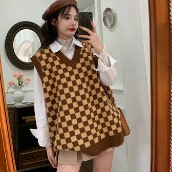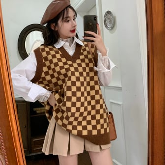 チェック柄ニットベスト