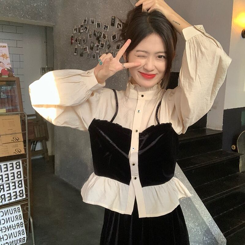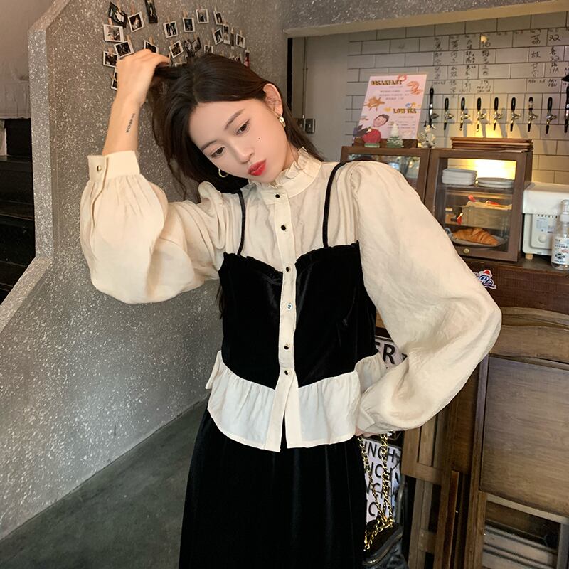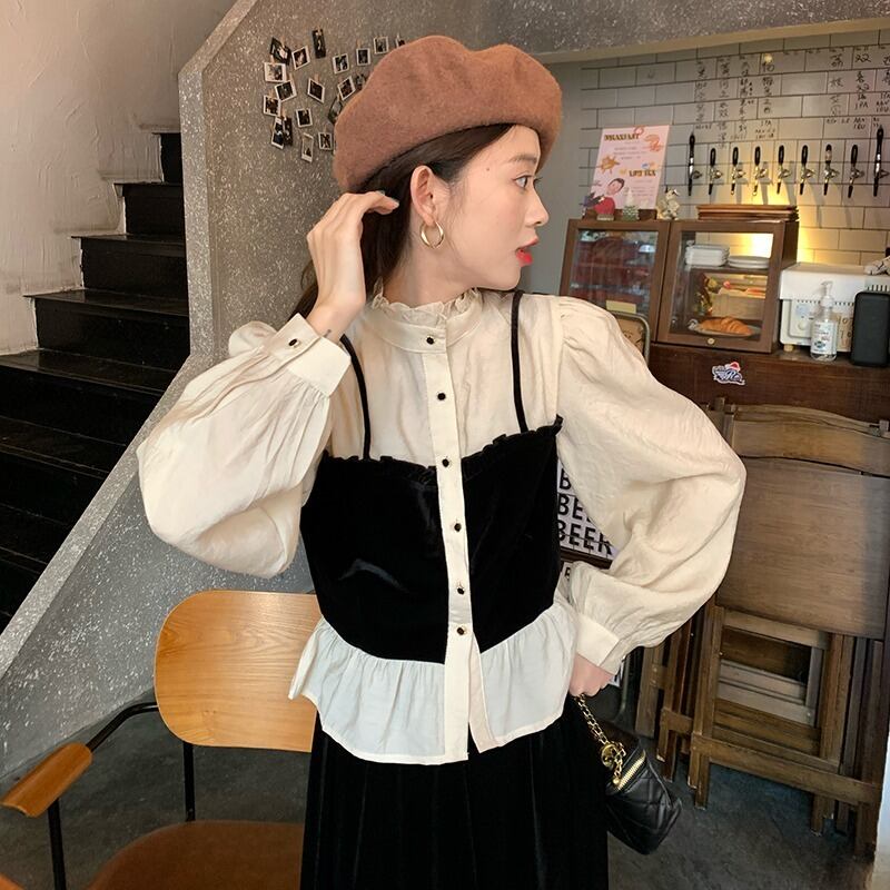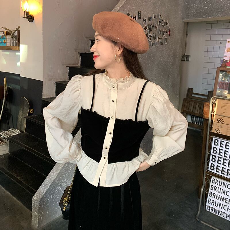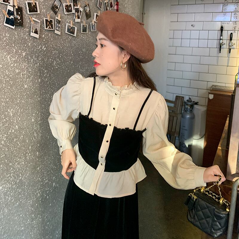スタンドカラーシャツ トップス ブラウス クラシック アプリコット レギュラー丈 袖あり 長袖 スタンドカラー スリム 細身 タイト シングルブレスト ボタン ポリエステル フェイク2ピース 大人女子 大人 上品 おしゃれ きれいめ シンプル デイリーウェア エレガント レトロ レトロ風 こなれ感 ラフ キュート かわいい 女子 個性的 デザイン 主役級 存在感 無地 春 スプリング 秋 オータム 10代 20代 レディース 女性用 デート お出かけ 女子会 S M L